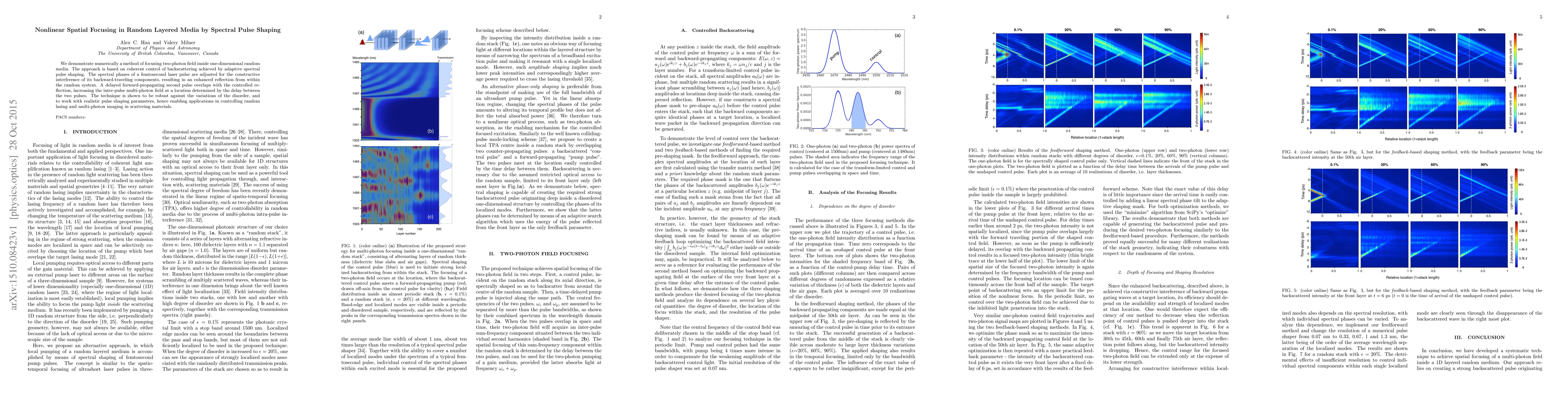 This paper presents a numerical method for focusing two-photon fields in one-dimensional random media using adaptive spectral pulse shaping to control backscattering. The technique enhances reflection through constructive interference of backward-traveling pulse components, enabling applications in random lasing and multi-photon imaging.