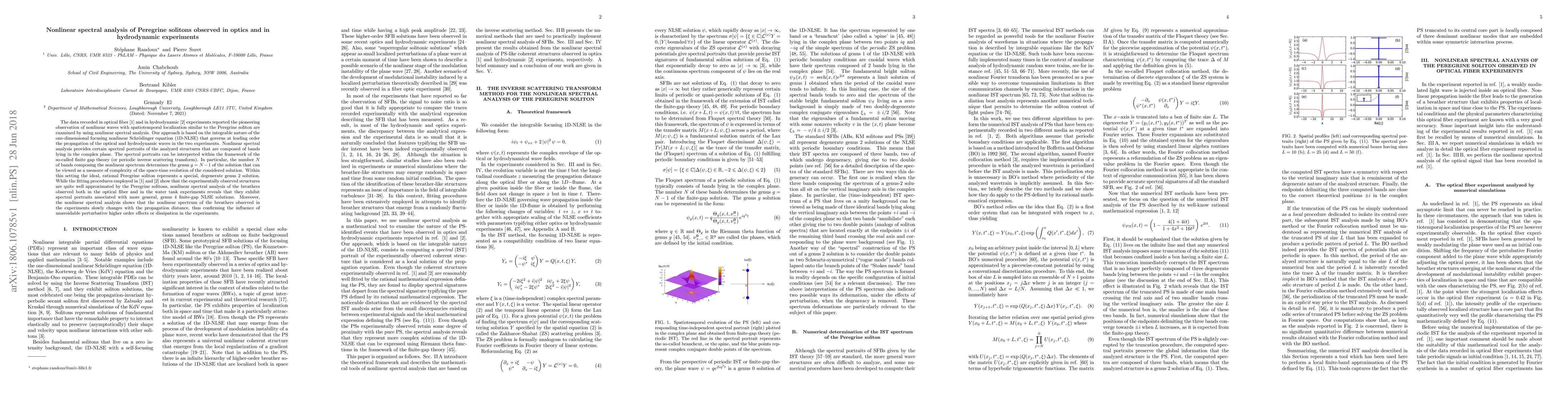 This paper employs nonlinear spectral analysis to examine the spatiotemporal localization of Peregrine solitons observed in optical fiber and hydrodynamic experiments. The analysis reveals that while the observed structures are well-approximated by Peregrine solitons, breathers exhibit more complex spectral portraits associated with higher genus finite-gap solutions, indicating the influence of perturbative effects.