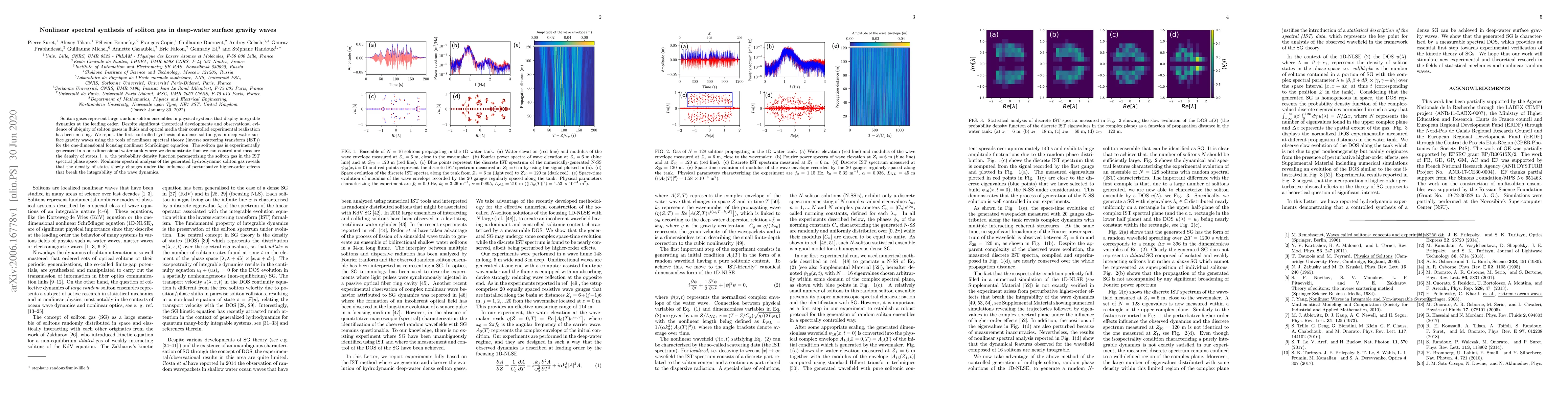 This paper reports the first controlled synthesis of a dense soliton gas in deep-water surface gravity waves using nonlinear spectral theory, demonstrating the ability to measure and control the density of states. The study reveals that higher-order perturbative effects gradually alter the integrable dynamics of the soliton gas.