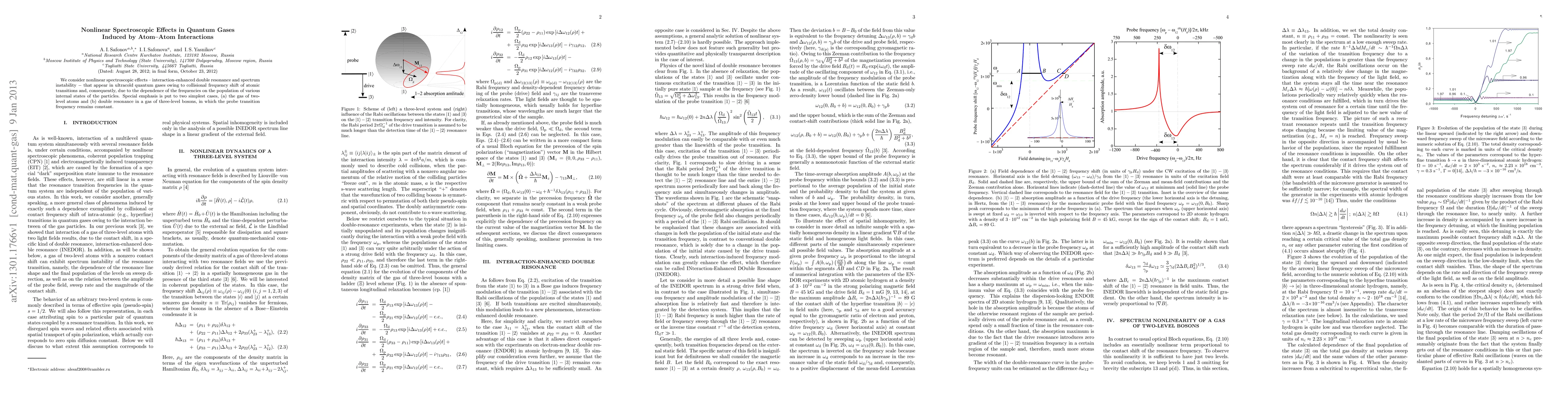 We consider nonlinear spectroscopic effects - interaction-enhanced double resonance and spectrum instability - that appear in ultracold quantum gases owing to collisional frequency shift of atomic transitions and, consequently, due to the dependence of the frequencies on the population of various internal states of the particles. Special emphasis is put to two simplest cases, (a) the gas of two-level atoms and (b) double resonance in a gas of three-level bosons, in which the probe transition frequency remains constant.