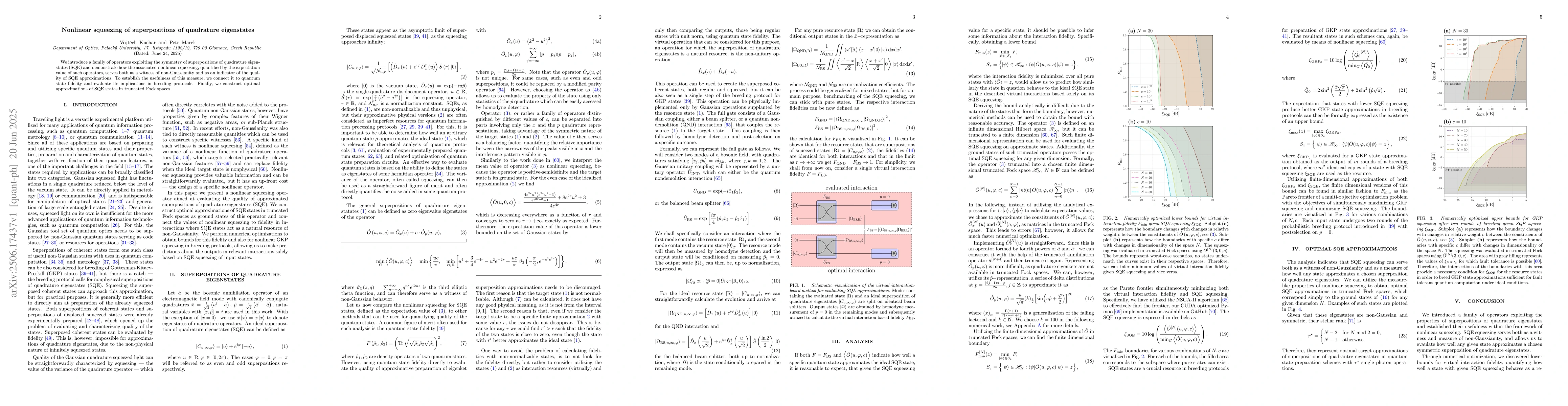 We introduce a family of operators exploiting the symmetry of superpositions of quadrature eigenstates (SQE) and demonstrate how the associated nonlinear squeezing, quantified by the expectation value of such operators, serves both as a witness of non-Gaussianity and as an indicator of the quality of SQE approximations. To establish the usefulness of this measure, we connect it to quantum state fidelity and evaluate its implications in breeding protocols. Finally, we construct optimal approximations of SQE states in truncated Fock spaces.