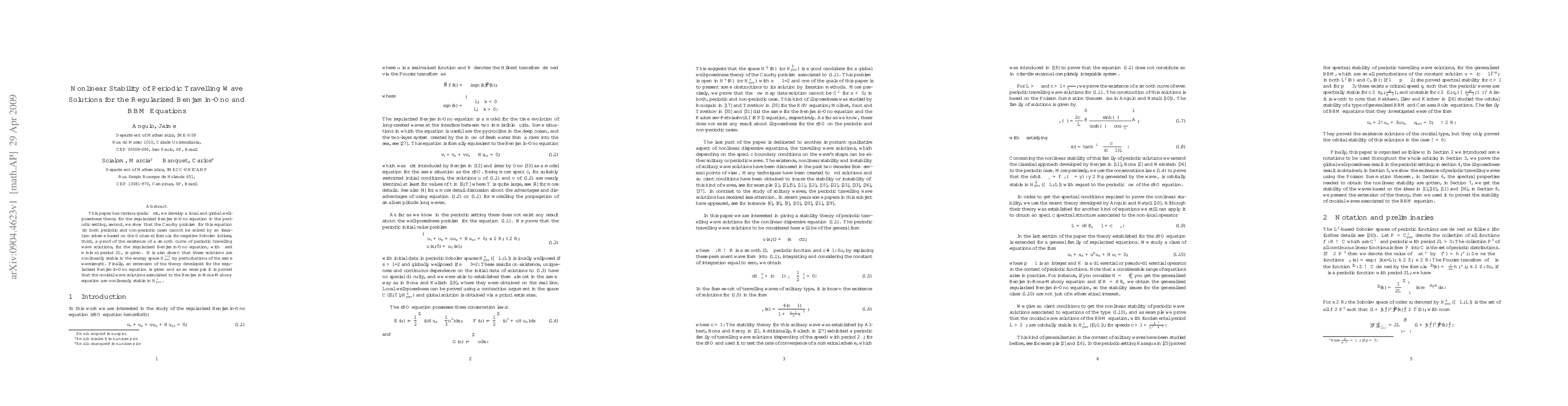 This paper establishes local and global well-posedness for the regularized Benjamin-Ono equation and proves nonlinear stability of periodic travelling wave solutions in $H^{1/2}_{per}$. The study also extends these results to the Benjamin-Bona-Mahony equation, showing stability of cnoidal wave solutions in $H^1_{per}$.