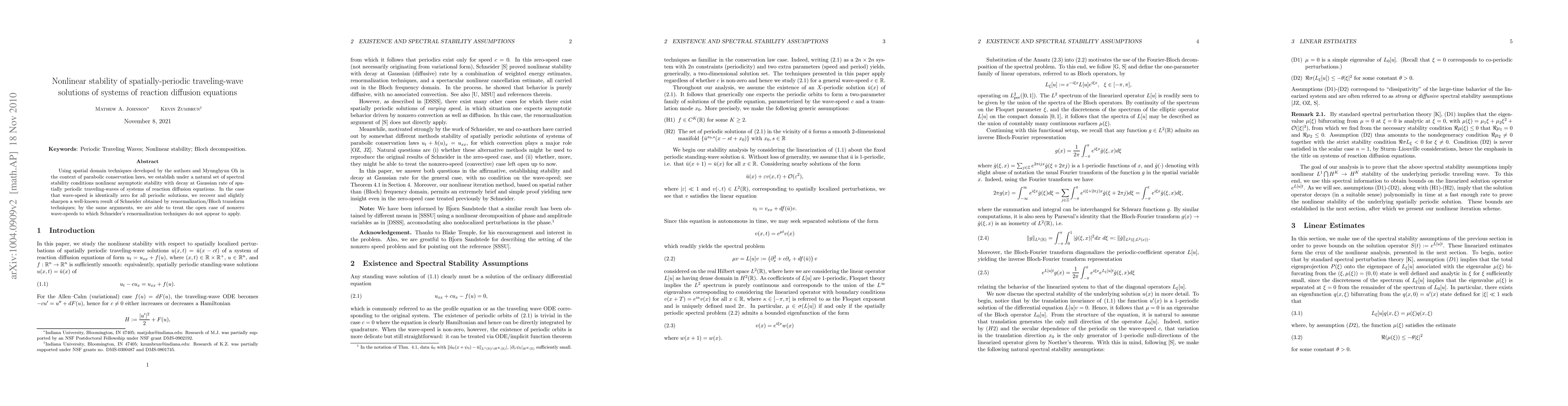 This paper establishes nonlinear asymptotic stability with Gaussian decay rate for spatially periodic traveling-wave solutions of reaction diffusion systems under spectral stability conditions. It extends known results for zero wave-speeds and introduces new methods for nonzero wave-speeds where traditional techniques fail.