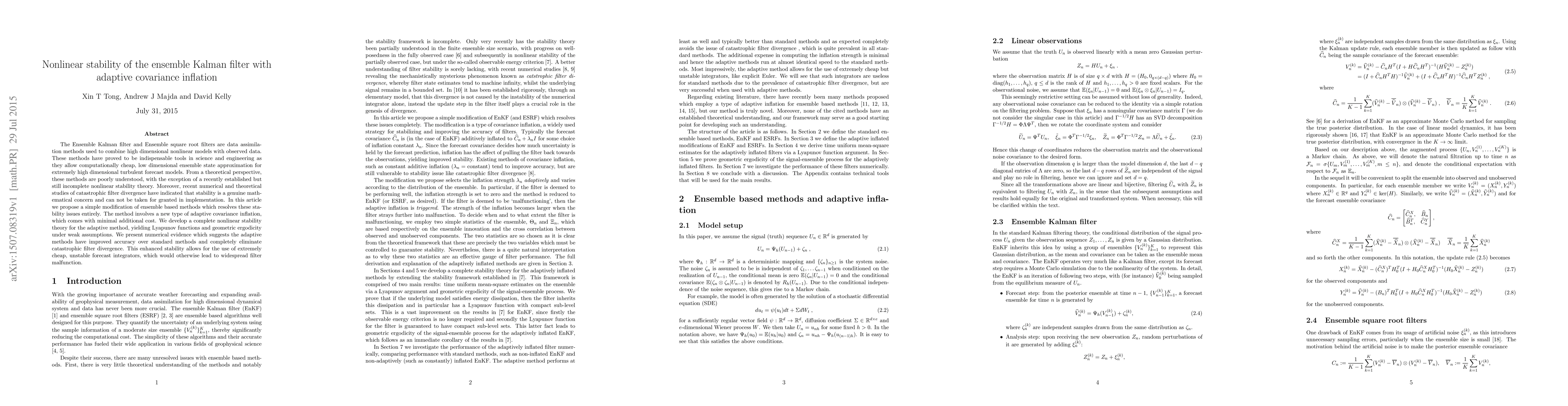 This paper proposes an adaptive covariance inflation method to improve the stability of the Ensemble Kalman filter, developing a complete nonlinear stability theory that resolves issues of catastrophic filter divergence and enhances accuracy over standard methods. The adaptive approach allows for the use of unstable forecast integrators without filter malfunction.