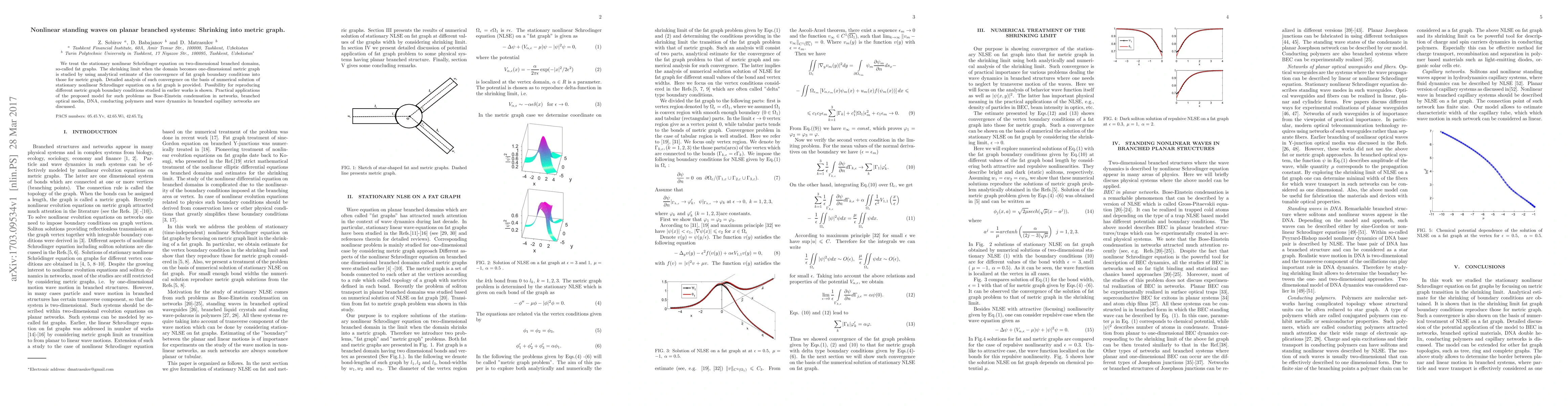 We treat the stationary nonlinear Schroodinger equation on two-dimensional branched domains, so-called fat graphs. The shrinking limit when the domain becomes one-dimensional metric graph is studied by using analytical estimate of the convergence of fat graph boundary conditions into those for metric graph. Detailed analysis of such convergence on the basis of numerical solution of stationary nonlinear Schrodinger equation on a fat graph is provided. Possibility for reproducing different metric graph boundary conditions studied in earlier works is shown. Practical applications of the proposed model for such problems as Bose-Einstein condensation in networks, branched optical media, DNA, conducting polymers and wave dynamics in branched capillary networks are discussed.
