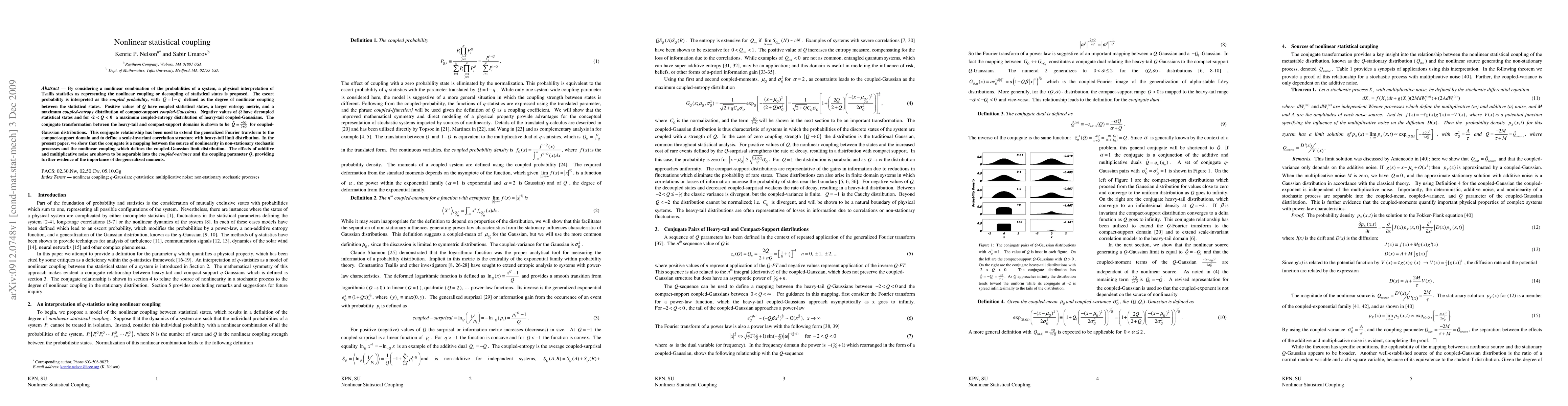 By considering a nonlinear combination of the probabilities of a system, a physical interpretation of Tsallis statistics as representing the nonlinear coupling or decoupling of statistical states is proposed. The escort probability is interpreted as the coupled probability, with Q = 1 - q defined as the degree of nonlinear coupling between the statistical states. Positive values of Q have coupled statistical states, a larger entropy metric, and a maximum coupled-entropy distribution of compact-support coupled-Gaussians. Negative values of Q have decoupled statistical states and for -2 < Q < 0 a maximum coupled-entropy distribution of heavy-tail coupled-Gaussians. The conjugate transformation between the heavy-tail and compact-support domains is shown to be -2Q/(2+Q) for coupled-Gaussian distributions. This conjugate relationship has been used to extend the generalized Fourier transform to the compact-support domain and to define a scale-invariant correlation structure with heavy-tail limit distribution. In the present paper, we show that the conjugate is a mapping between the source of nonlinearity in non-stationary stochastic processes and the nonlinear coupling which defines the coupled-Gaussian limit distribution. The effects of additive and multiplicative noise are shown to be separable into the coupled-variance and the coupling parameter Q, providing further evidence of the importance of the generalized moments.
