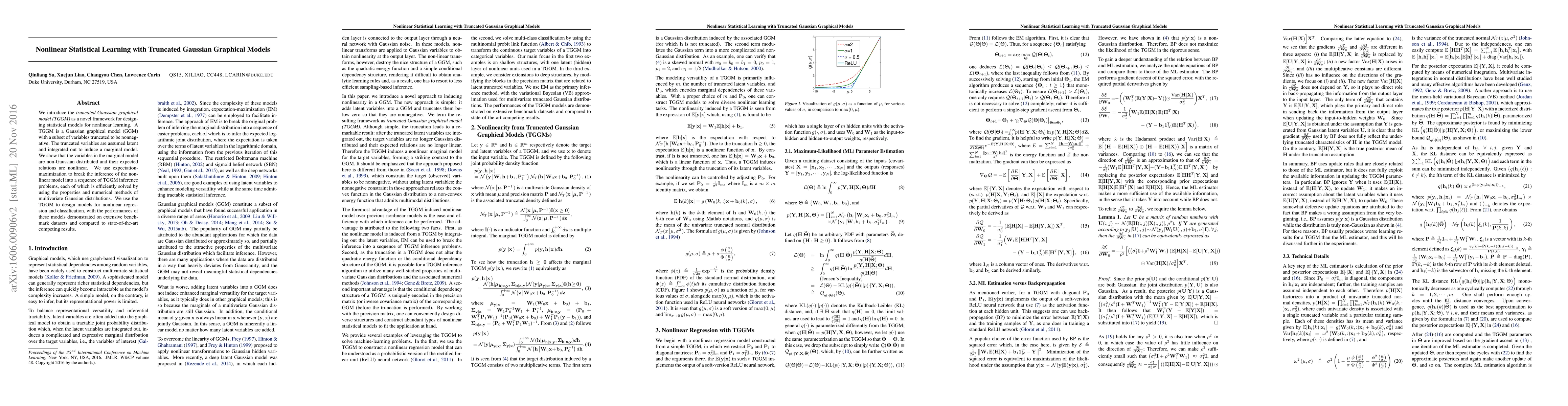 This paper proposes the truncated Gaussian graphical model (TGGM) for nonlinear statistical learning, where latent nonnegative variables induce non-Gaussian marginal distributions with nonlinear relationships. The authors utilize expectation-maximization to solve the model efficiently and demonstrate its effectiveness in regression and classification tasks through benchmark comparisons.
