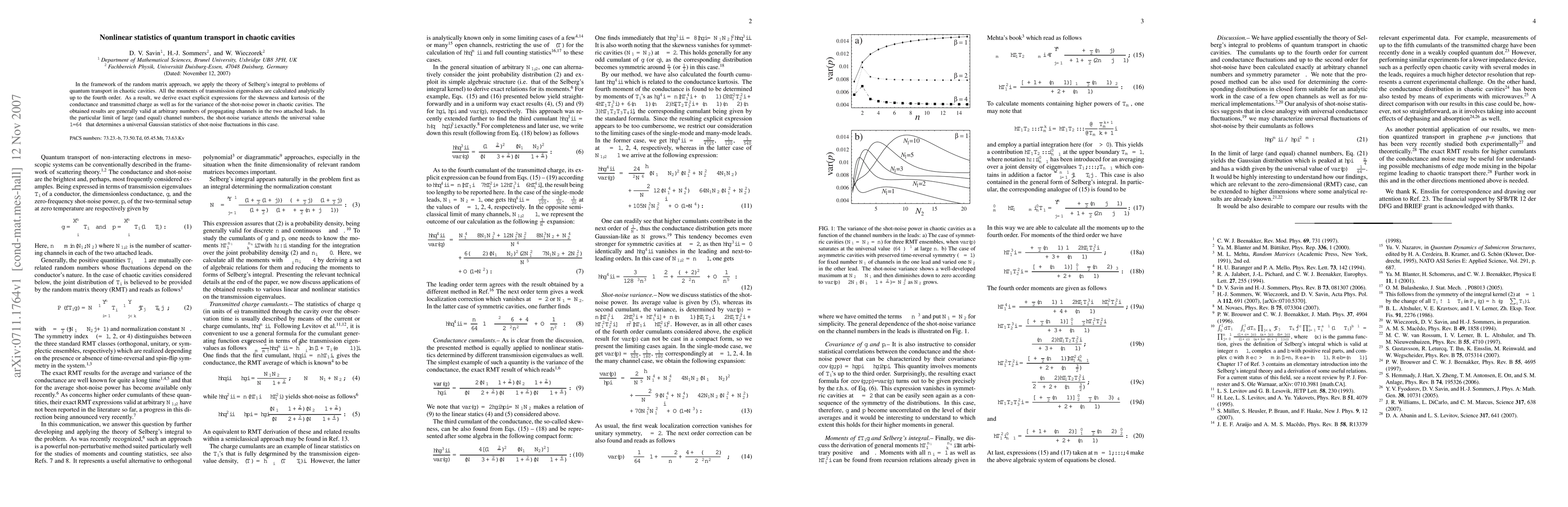 In the framework of the random matrix approach, we apply the theory of Selberg's integral to problems of quantum transport in chaotic cavities. All the moments of transmission eigenvalues are calculated analytically up to the fourth order. As a result, we derive exact explicit expressions for the skewness and kurtosis of the conductance and transmitted charge as well as for the variance of the shot-noise power in chaotic cavities. The obtained results are generally valid at arbitrary numbers of propagating channels in the two attached leads. In the particular limit of large (and equal) channel numbers, the shot-noise variance attends the universal value 1/(64\beta) that determines a universal Gaussian statistics of shot-noise fluctuations in this case.