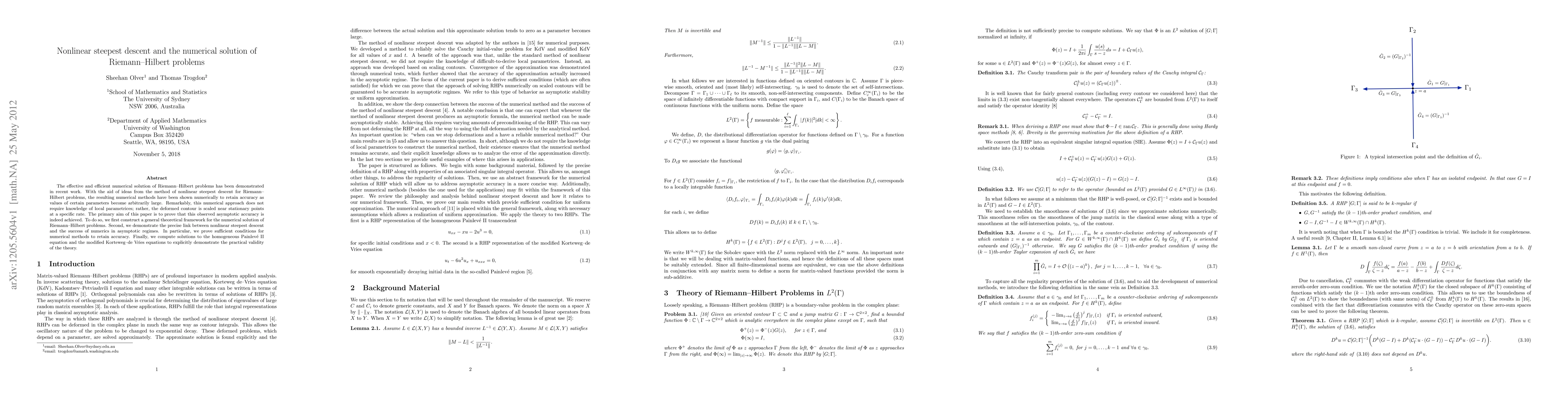 This paper develops a theoretical framework for numerically solving Riemann-Hilbert problems using nonlinear steepest descent, proving that the methods retain accuracy even as parameters grow large. It demonstrates the practical validity of the theory through solutions to the homogeneous Painlevé II and modified Korteweg-de Vries equations.