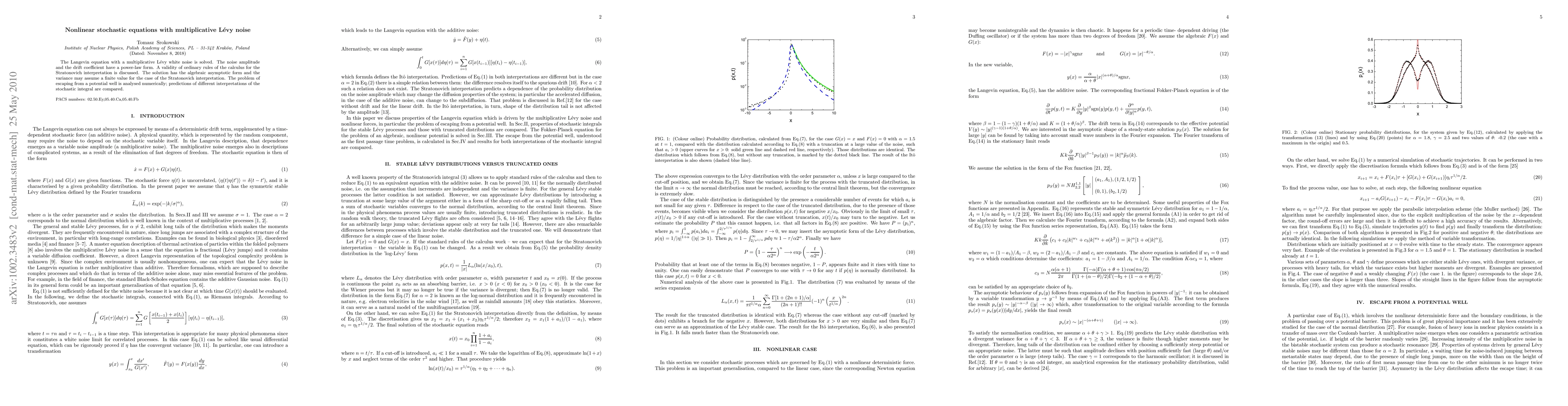 This paper solves the Langevin equation with multiplicative Lévy noise, showing that the solution exhibits an algebraic asymptotic form. It discusses the validity of ordinary calculus rules for the Stratonovich interpretation and compares predictions of different stochastic integral interpretations, analyzing the problem of escaping from a potential well numerically.