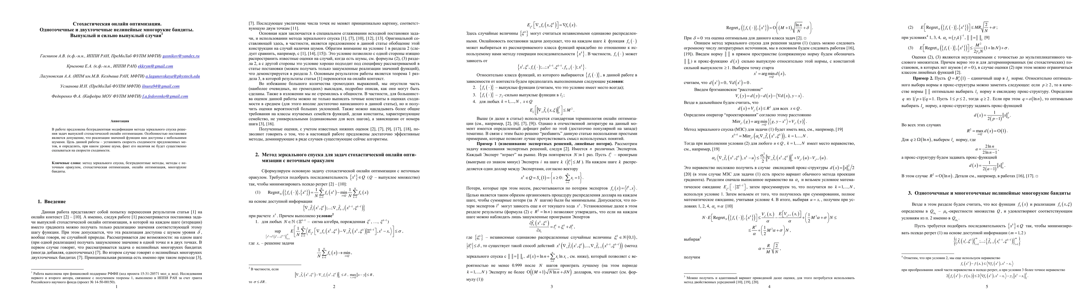 Summary: This paper explores nonlinear stochastic multiarmed bandit problems with inexact oracles, focusing on one-point and two-point scenarios in online stochastic convex optimization. It generalizes classical results to accommodate small noise levels and non-Euclidean prox-structures.