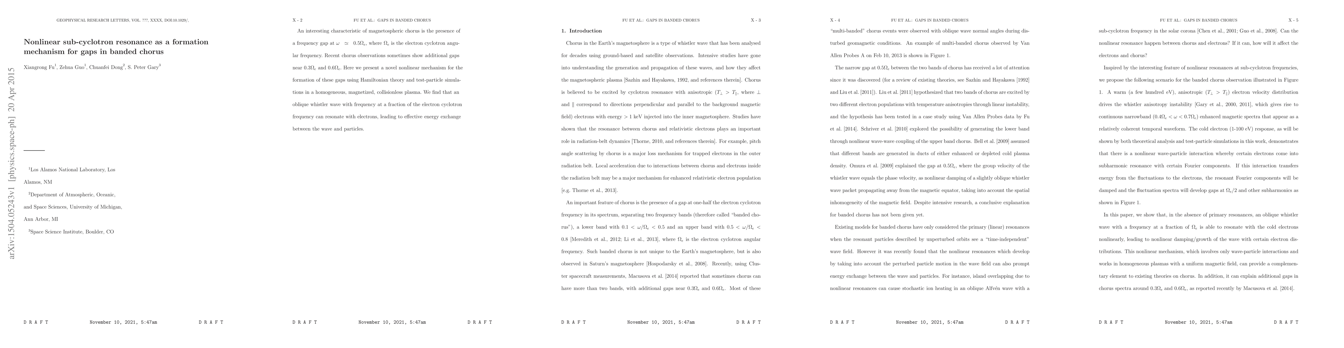 An interesting characteristic of magnetospheric chorus is the presence of a frequency gap at $\omega \simeq 0.5\Omega_e$, where $\Omega_e$ is the electron cyclotron angular frequency. Recent chorus observations sometimes show additional gaps near $0.3\Omega_e$ and $0.6\Omega_e$. Here we present a novel nonlinear mechanism for the formation of these gaps using Hamiltonian theory and test-particle simulations in a homogeneous, magnetized, collisionless plasma. We find that an oblique whistler wave with frequency at a fraction of the electron cyclotron frequency can resonate with electrons, leading to effective energy exchange between the wave and particles.