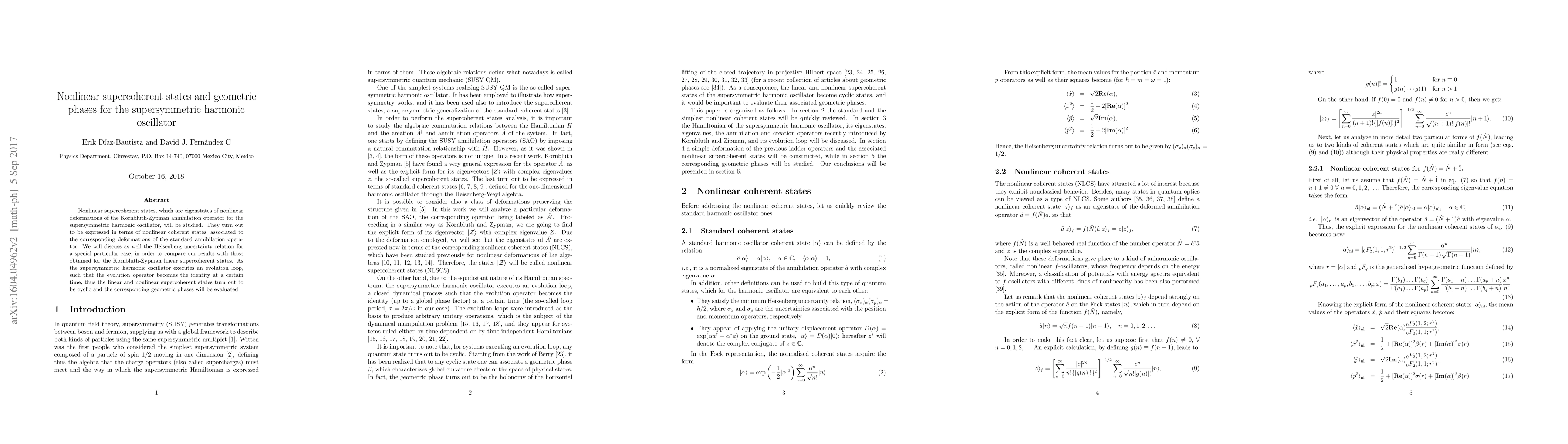 Nonlinear supercoherent states, which are eigenstates of nonlinear deformations of the Kornbluth-Zypman annihilation operator for the supersymmetric harmonic oscillator, will be studied. They turn out to be expressed in terms of nonlinear coherent states, associated to the corresponding deformations of the standard annihilation operator. We will discuss as well the Heisenberg uncertainty relation for a special particular case, in order to compare our results with those obtained for the Kornbluth-Zypman linear supercoherent states. As the supersymmetric harmonic oscillator executes an evolution loop, such that the evolution operator becomes the identity at a certain time, thus the linear and nonlinear supercoherent states turn out to be cyclic and the corresponding geometric phases will be evaluated.