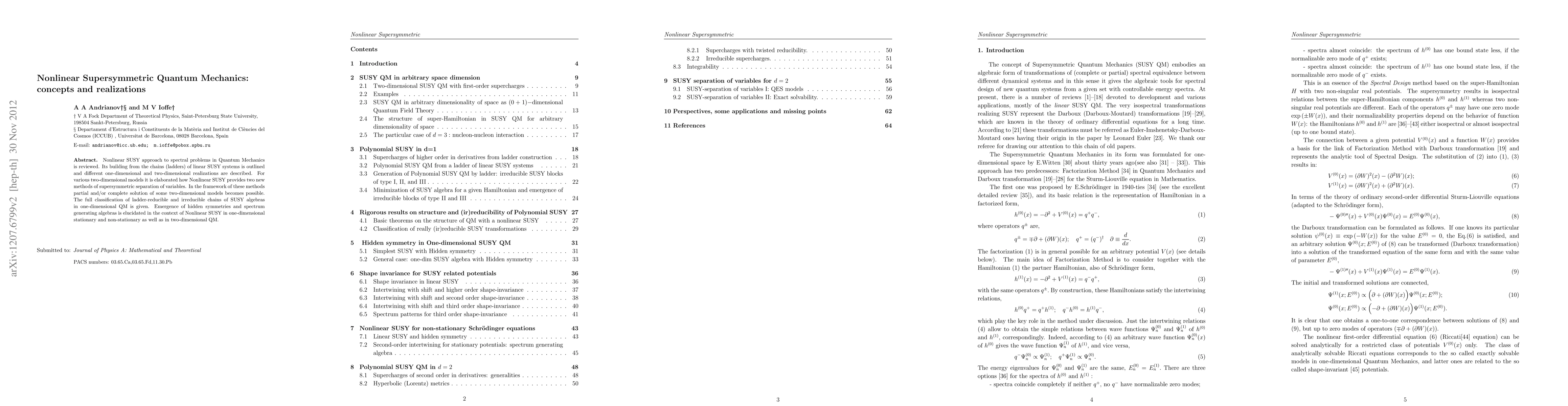 Nonlinear SUSY approach to preparation of quantum systems with pre-planned spectral properties is reviewed. Possible multidimensional extensions of Nonlinear SUSY are described. The full classification of ladder-reducible and irreducible chains of SUSY algebras in one-dimensional QM is given. Emergence of hidden symmetries and spectrum generating algebras is elucidated in the context of Nonlinear SUSY in one- and two-dimensional QM.