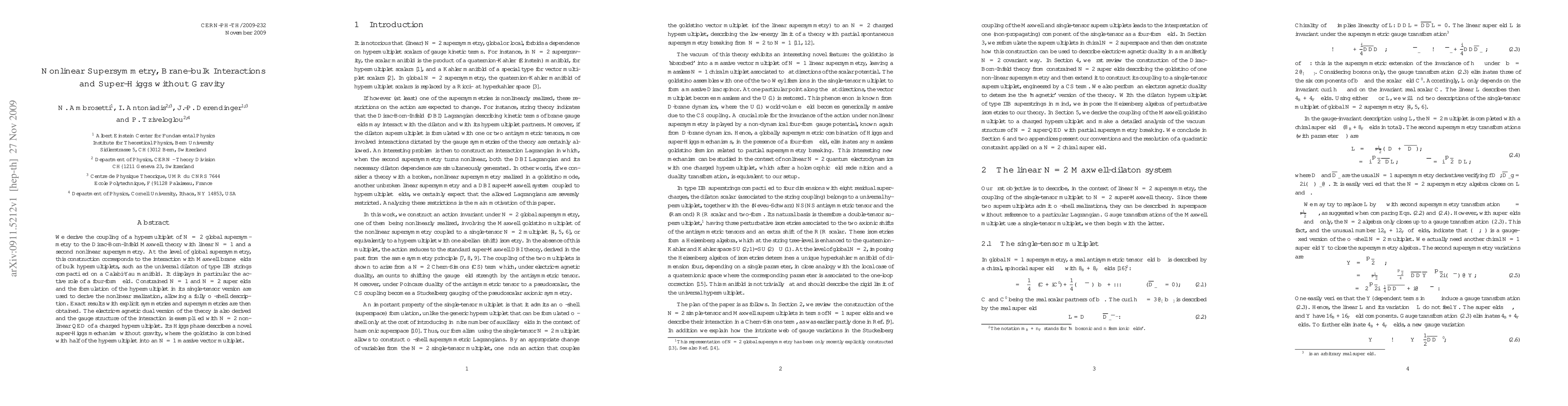 We derive the coupling of a hypermultiplet of N=2 global supersymmetry to the Dirac-Born-Infeld Maxwell theory with linear N=1 and a second nonlinear supersymmetry. At the level of global supersymmetry, this construction corresponds to the interaction with Maxwell brane fields of bulk hypermultiplets, such as the universal dilaton of type IIB strings compactified on a Calabi-Yau manifold. It displays in particular the active role of a four-form field. Constrained N=1 and N=2 superfields and the formulation of the hypermultiplet in its single-tensor version are used to derive the nonlinear realization, allowing a fully off-shell description. Exact results with explicit symmetries and supersymmetries are then obtained. The electric-magnetic dual version of the theory is also derived and the gauge structure of the interaction is exemplified with N=2 nonlinear QED of a charged hypermultiplet. Its Higgs phase describes a novel super-Higgs mechanism without gravity, where the goldstino is combined with half of the hypermultiplet into an N=1 massive vector multiplet.