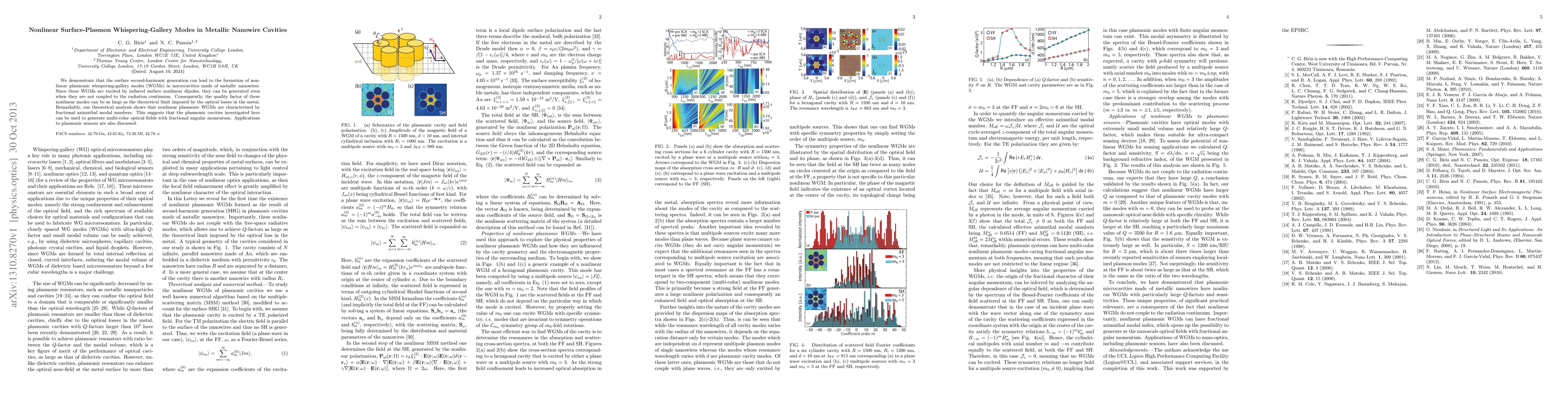 Researchers demonstrate nonlinear surface-plasmon whispering-gallery modes in metallic nanowire cavities, enabling multi-color optical fields with fractional angular momentum. These findings have implications for plasmonic sensors.