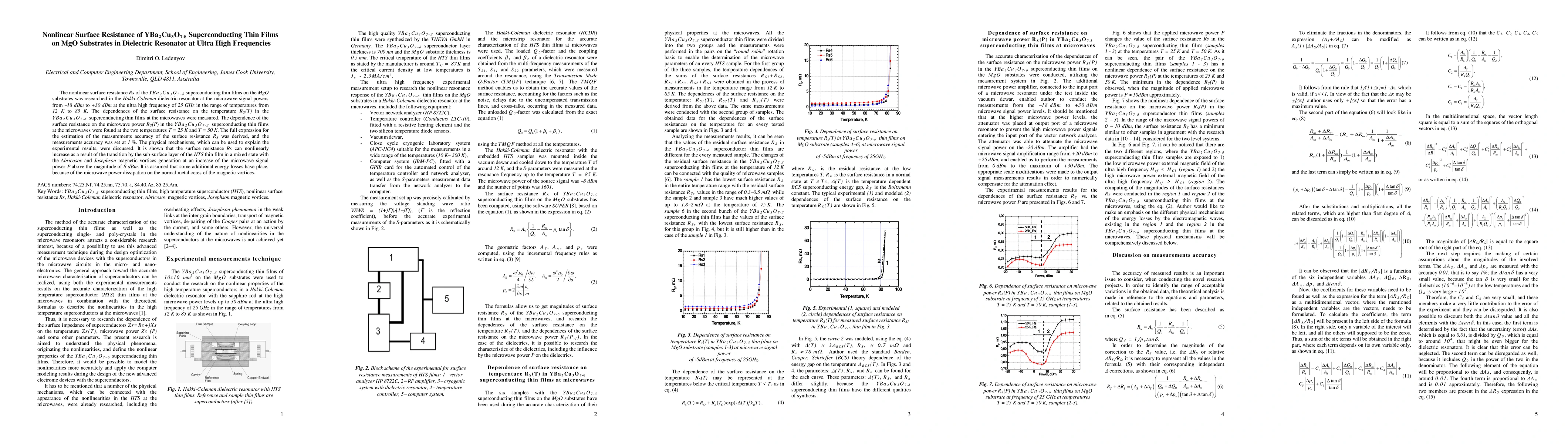 This study investigates the nonlinear surface resistance of YBa2Cu3O7-x superconducting thin films on MgO substrates at ultra-high frequencies of 25 GHz, revealing a nonlinear increase in surface resistance due to the generation of Abricosov and Josephson magnetic vortices at microwave signal powers above 8 dBm. The research also discusses the physical mechanisms behind these energy losses.