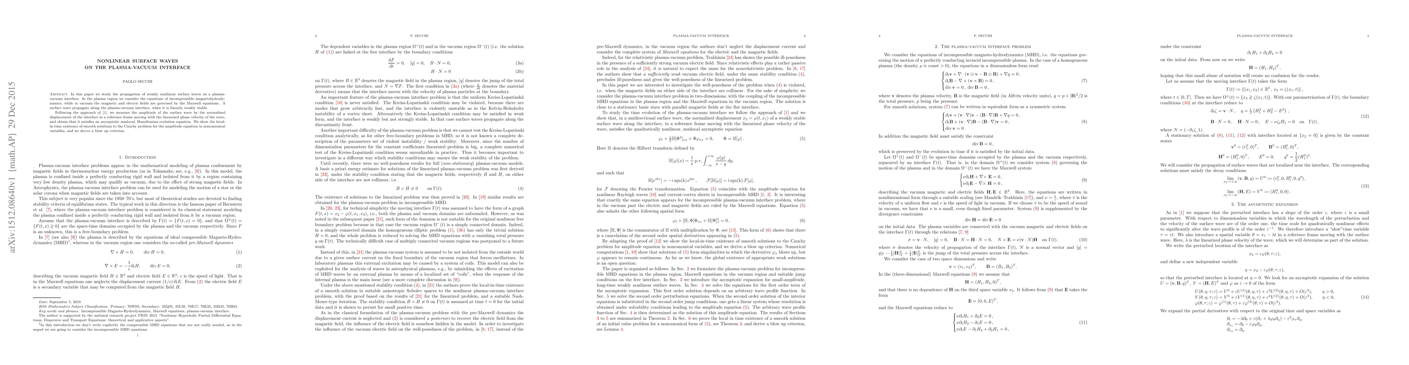 This paper investigates weakly nonlinear surface waves at the plasma-vacuum interface, deriving an asymptotic nonlocal Hamiltonian evolution equation for the wave amplitude. It establishes local-in-time existence of smooth solutions and provides a blow-up criterion.