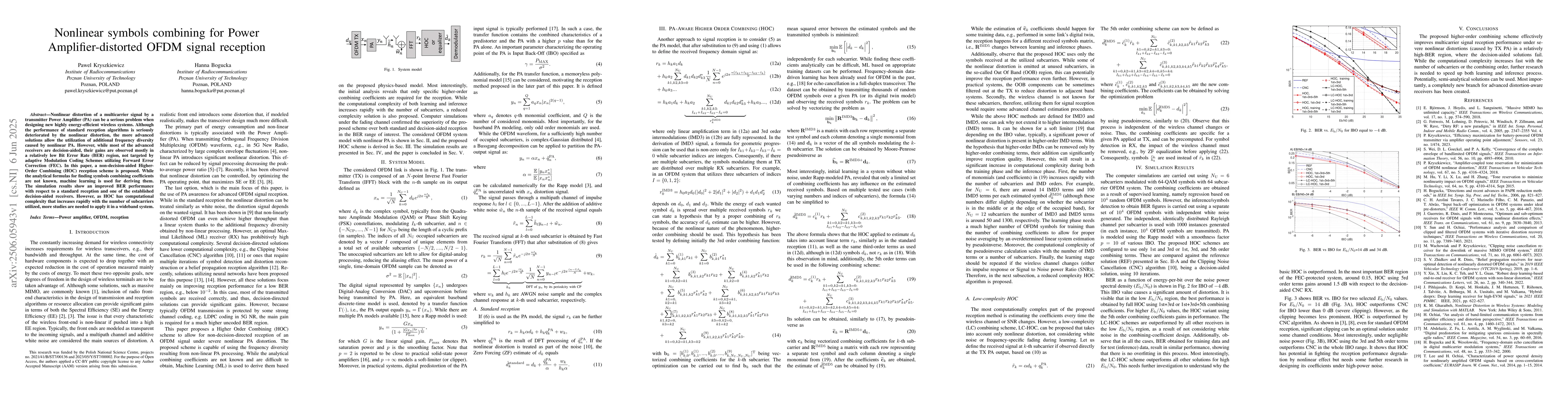 Nonlinear distortion of a multicarrier signal by a transmitter Power Amplifier (PA) can be a serious problem when designing new highly energy-efficient wireless systems. Although the performance of standard reception algorithms is seriously deteriorated by the nonlinear distortion, the more advanced solutions allow the utilization of additional frequency diversity caused by nonlinear PA. However, while most of the advanced receivers are decision-aided, their gains are observed mostly in a relatively low Bit Error Rate (BER) region, not targeted by adaptive Modulation Coding Schemes utilizing Forward Error Correction (FEC). In this paper, a non-decision-aided Higher-Order Combining (HOC) reception scheme is proposed. While the analytical formulas for finding symbols combining coefficients are not known, machine learning is used for deriving them. The simulation results show an improved BER performance with respect to a standard reception and one of the established decision-aided receivers. However, as HOC has computational complexity that increases rapidly with the number of subcarriers utilized, more studies are needed to apply it in a wideband system.
