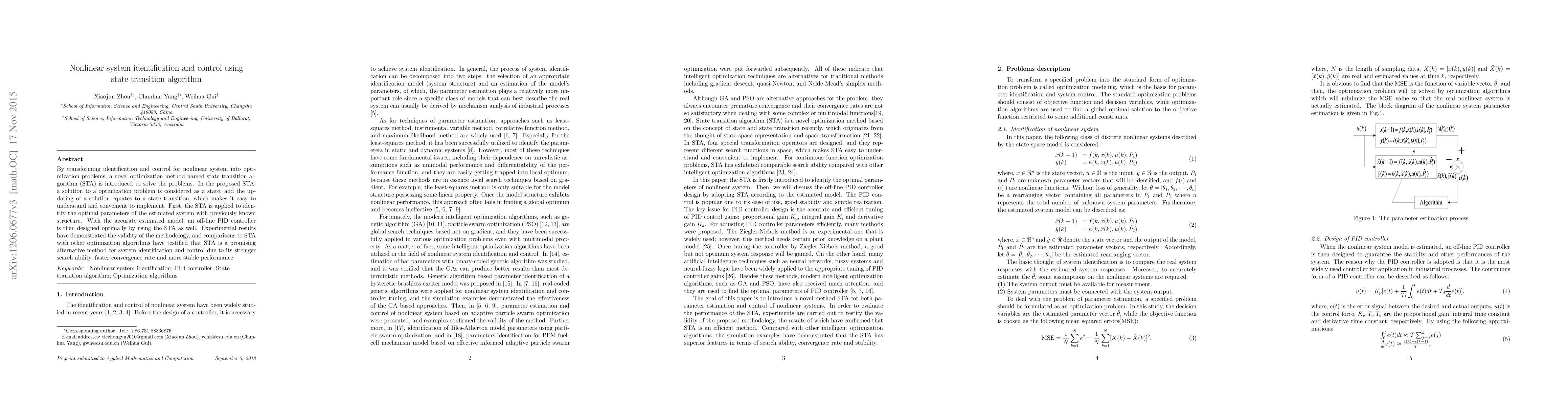 This paper introduces a novel state transition algorithm (STA) for nonlinear system identification and control, transforming these tasks into optimization problems. The STA demonstrates superior search ability, faster convergence, and more stable performance compared to other methods, as shown through experimental validation and comparisons.