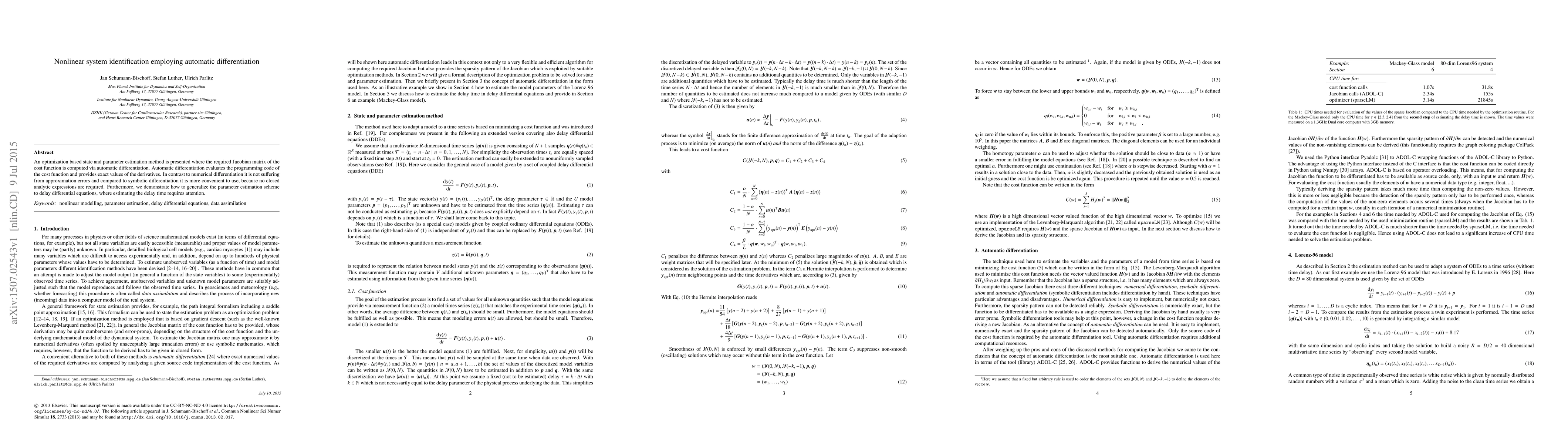 This paper introduces an optimization-based method for identifying nonlinear systems using automatic differentiation to compute the Jacobian matrix, which avoids approximation errors and is more practical than symbolic differentiation. The method is also extended to handle delay differential equations, emphasizing the importance of estimating the delay time.