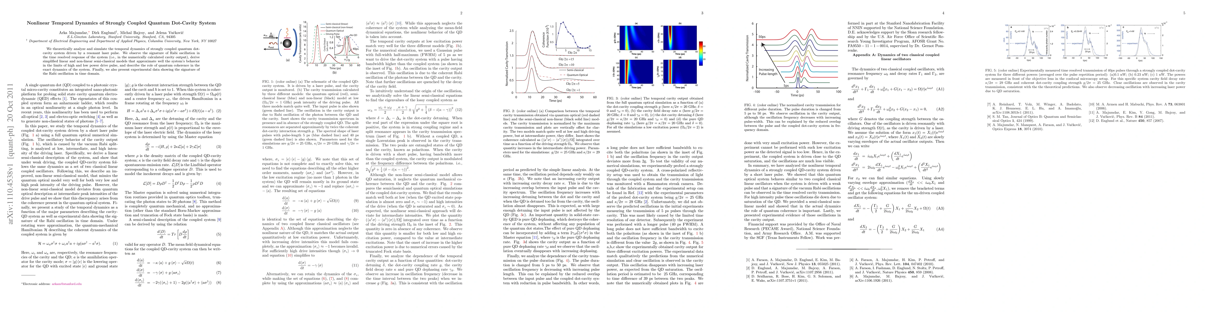 This paper investigates the nonlinear temporal dynamics of a quantum dot-cavity system driven by resonant laser pulses, observing Rabi oscillations in the system's response. It develops simplified models to approximate the system's behavior under varying power conditions and highlights the influence of quantum coherence. Experimental data corroborates the theoretical findings.