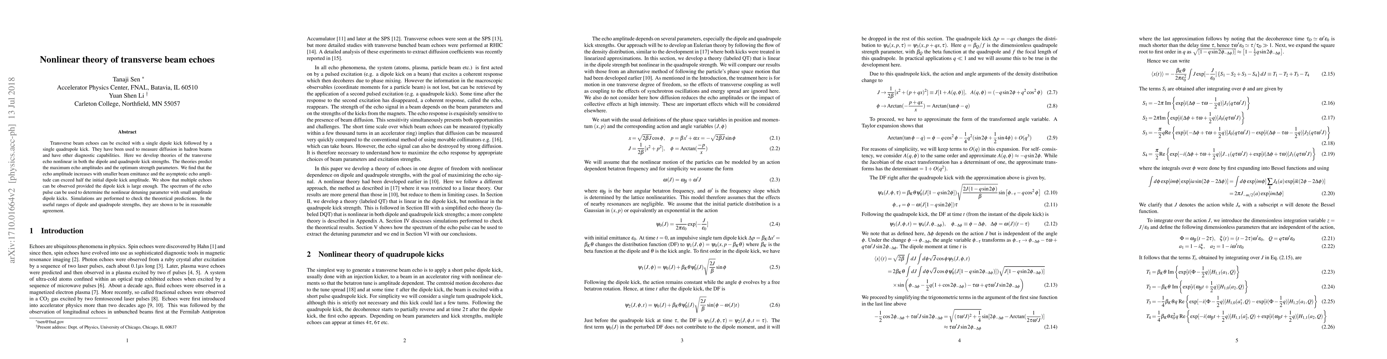 Transverse beam echoes can be excited with a single dipole kick followed by a single quadrupole kick. They have been used to measure diffusion in hadron beams and have other diagnostic capabilities. Here we develop theories of the transverse echo nonlinear in both the dipole and quadrupole kick strengths. The theories predict the maximum echo amplitudes and the optimum strength parameters. We find that the echo amplitude increases with smaller beam emittance and the asymptotic echo amplitude can exceed half the initial dipole kick amplitude. We show that multiple echoes can be observed provided the dipole kick is large enough. The spectrum of the echo pulse can be used to determine the nonlinear detuning parameter with small amplitude dipole kicks. Simulations are performed to check the theoretical predictions. In the useful ranges of dipole and quadrupole strengths, they are shown to be in reasonable agreement.