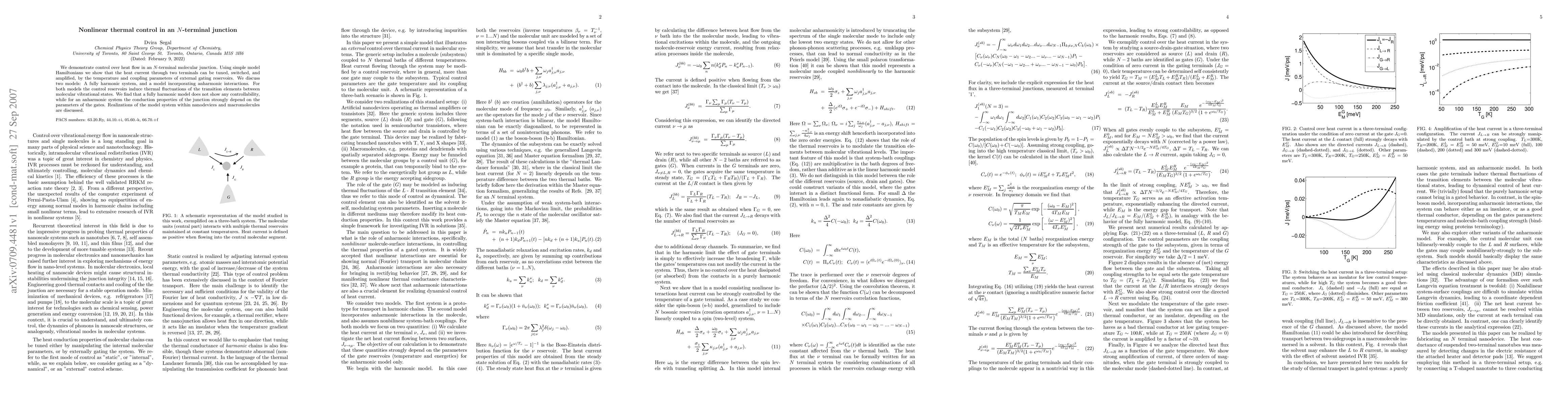 We demonstrate control over heat flow in an N-terminal molecular junction. Using simple model Hamiltonians we show that the heat current through two terminals can be tuned, switched, and amplified, by the temperature and coupling parameters of external gating reservoirs. We discuss two models: A fully harmonic system, and a model incorporating anharmonic interactions. For both models the control reservoirs induce thermal fluctuations of the transition elements between molecular vibrational states. We find that a fully harmonic model does not show any controllability, while for an anharmonic system the conduction properties of the junction strongly depend on the parameters of the gates. Realizations of the model system within nanodevices and macromolecules are discussed.