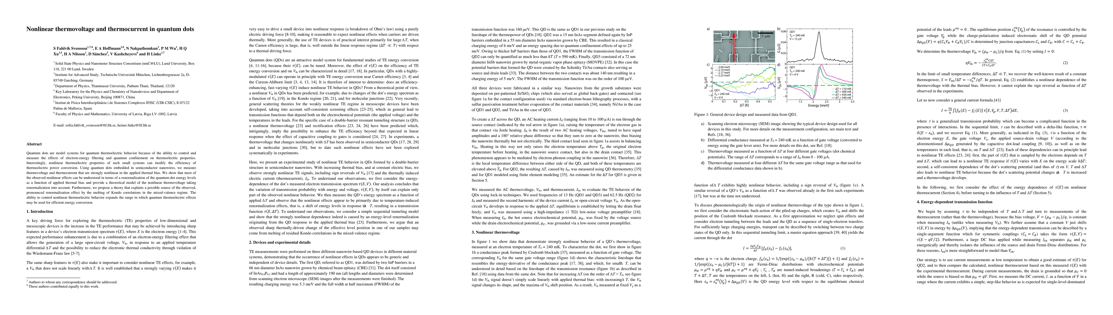 The research investigates quantum dots' thermoelectric properties, demonstrating strong nonlinearity in thermovoltage and thermocurrent under thermal bias. The study proposes a theoretical model explaining these effects through energy level renormalization, attributing pronounced renormalization to the breakdown of Kondo correlations. This work expands the application of quantum thermoelectric effects in energy conversion.