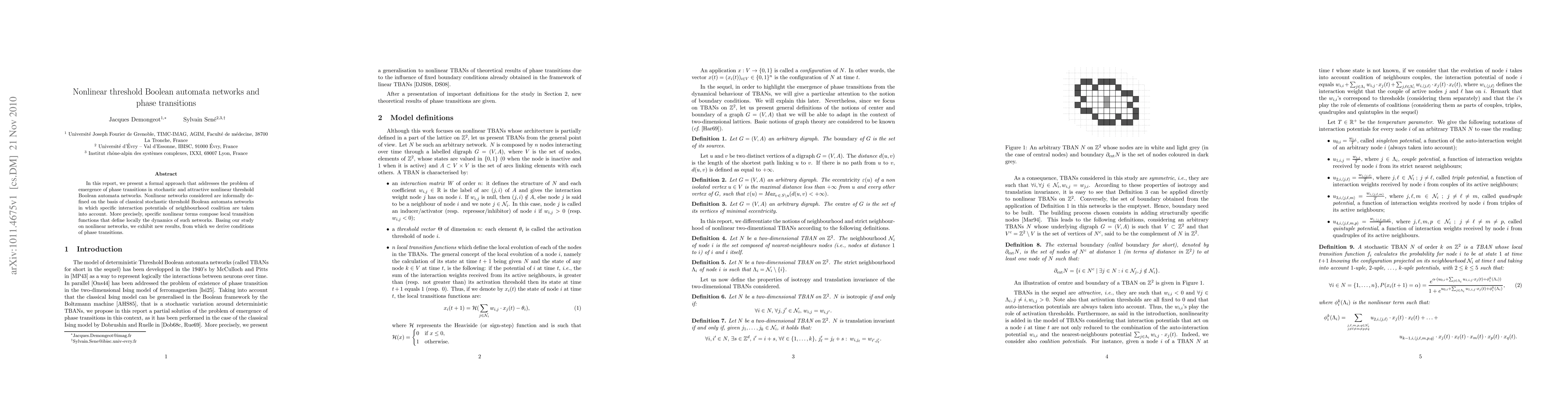 In this report, we present a formal approach that addresses the problem of emergence of phase transitions in stochastic and attractive nonlinear threshold Boolean automata networks. Nonlinear networks considered are informally defined on the basis of classical stochastic threshold Boolean automata networks in which specific interaction potentials of neighbourhood coalition are taken into account. More precisely, specific nonlinear terms compose local transition functions that define locally the dynamics of such networks. Basing our study on nonlinear networks, we exhibit new results, from which we derive conditions of phase transitions.