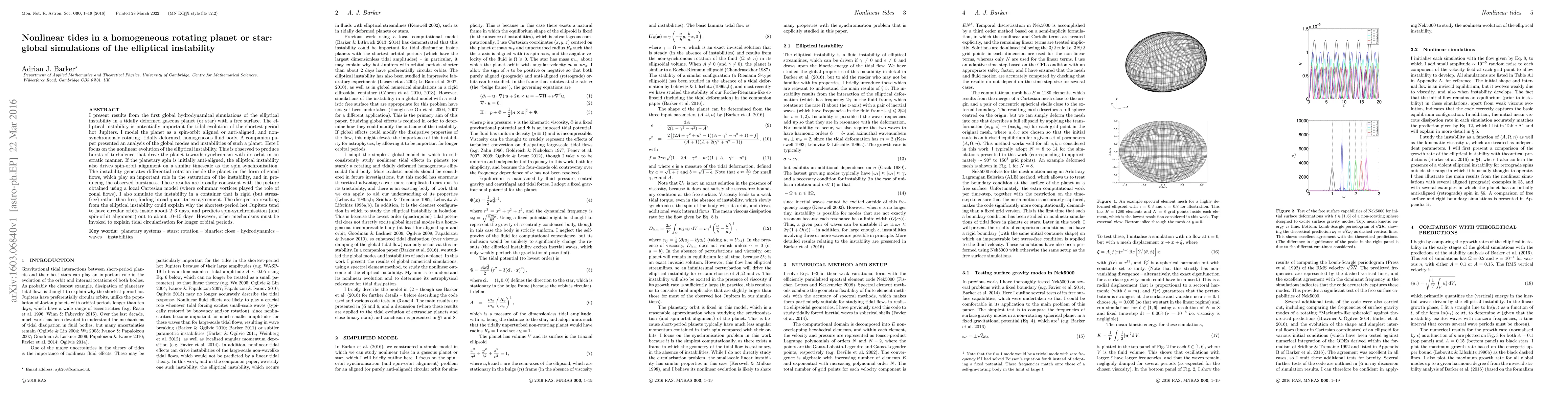 This paper presents global hydrodynamic simulations of the elliptical instability in tidally deformed gaseous planets or stars, showing that it leads to bursts of turbulence driving spin synchronisation and spin-orbit alignment. The instability generates differential rotation in the form of zonal flows, which help saturate the instability and produce burstiness.