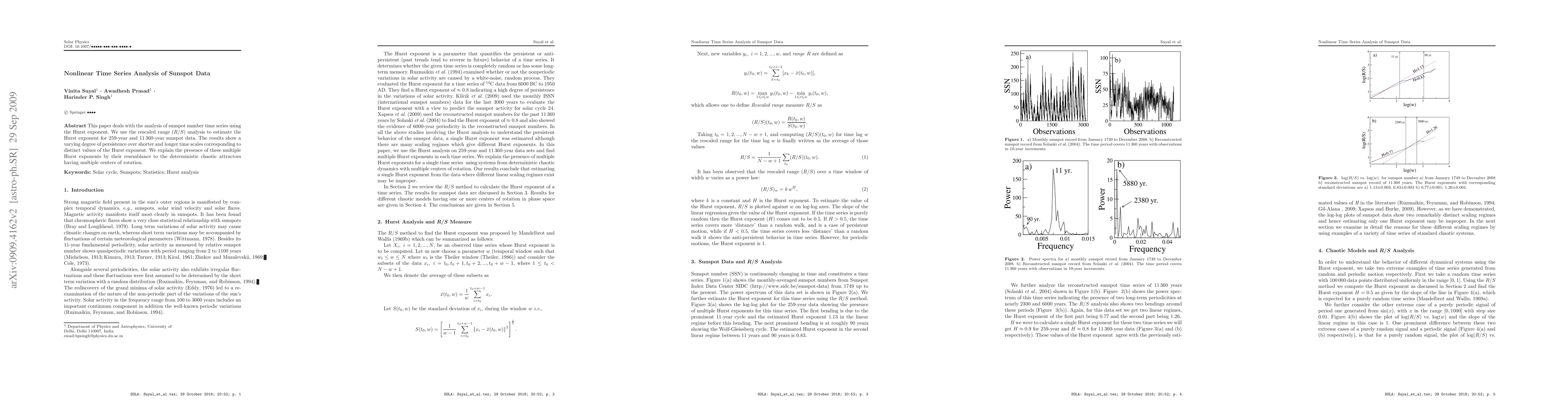 This paper analyzes sunspot number time series using Hurst exponent analysis, revealing varying degrees of persistence over different time scales, with possible connections to deterministic chaotic attractors.