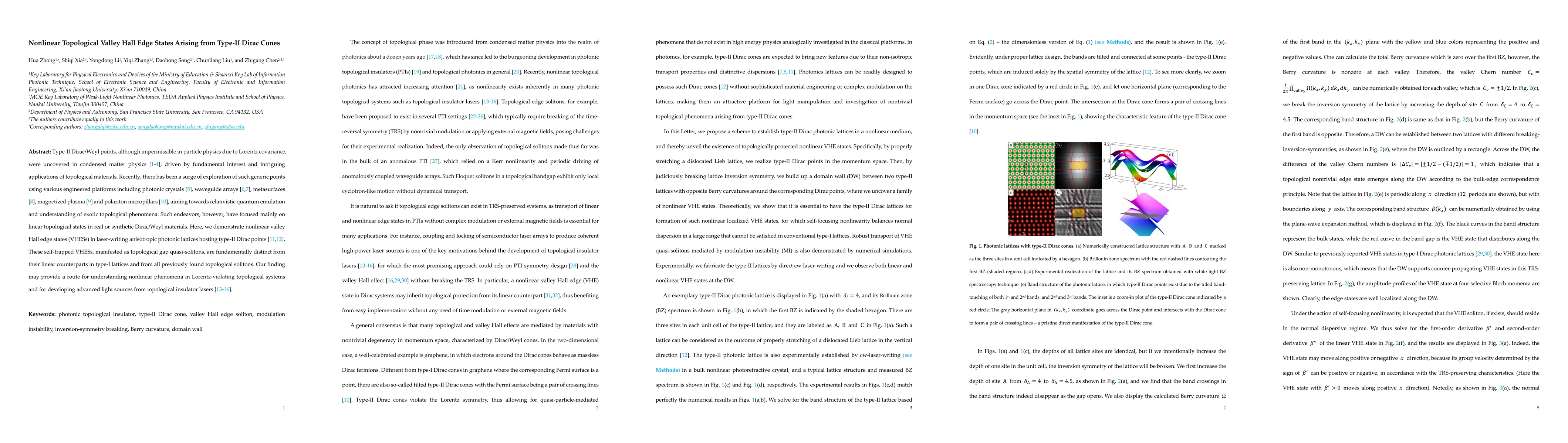 This paper demonstrates nonlinear valley Hall edge states in photonic lattices with type-II Dirac points, revealing topological gap quasi-solitons distinct from linear topological states. The findings may advance understanding of nonlinear phenomena in topological systems and inspire new light source technologies.