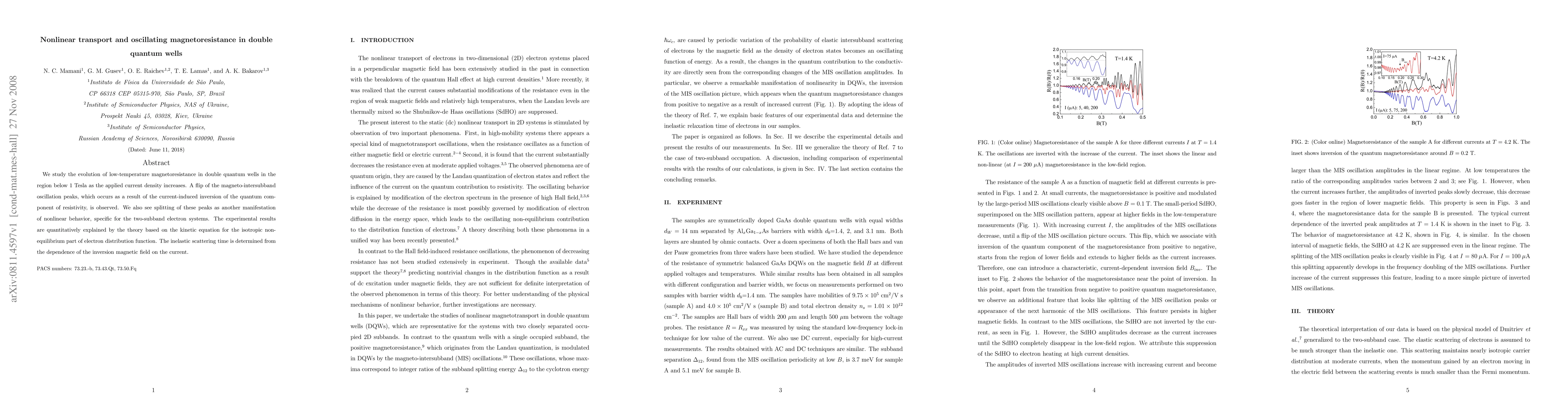 This paper investigates the nonlinear magnetoresistance in double quantum wells under low-temperature conditions, revealing a current-induced inversion of resistivity and peak splitting in magneto-intersubband oscillations. Theoretical models based on kinetic equations explain the observed phenomena, with inelastic scattering time derived from the magnetic field's effect on current.