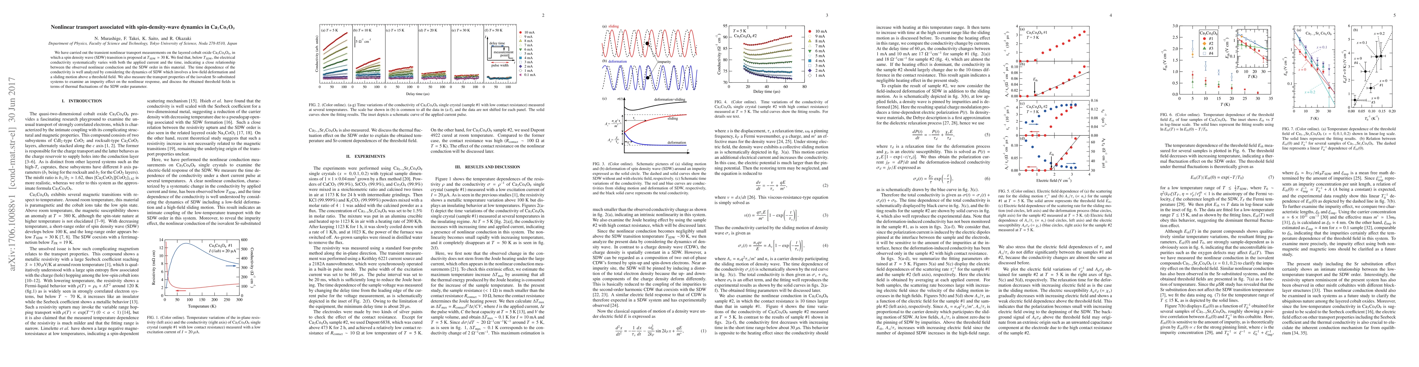 Researchers studied a cobalt oxide material that exhibits nonlinear transport and spin-density-wave dynamics at 30K. They found a close relationship between the material's conductivity and its SDW order, with a threshold field linked to thermal fluctuations of the order parameter.