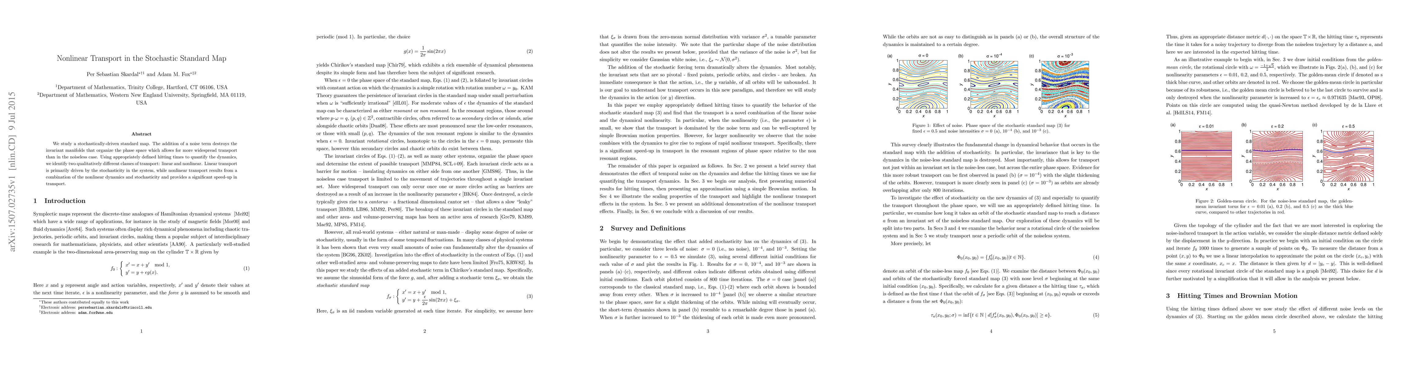 We study a stochastically-driven standard map. The addition of a noise term destroys the invariant manifolds that organize the phase space which allows for more widespread transport than in the noiseless case. Using appropriately defined hitting times to quantify the dynamics, we identify two qualitatively different classes of transport: linear and nonlinear. Linear transport is primarily driven by the stochasticity in the system, while nonlinear transport results from a combination of the nonlinear dynamics and stochasticity and provides a significant speed-up in transport.