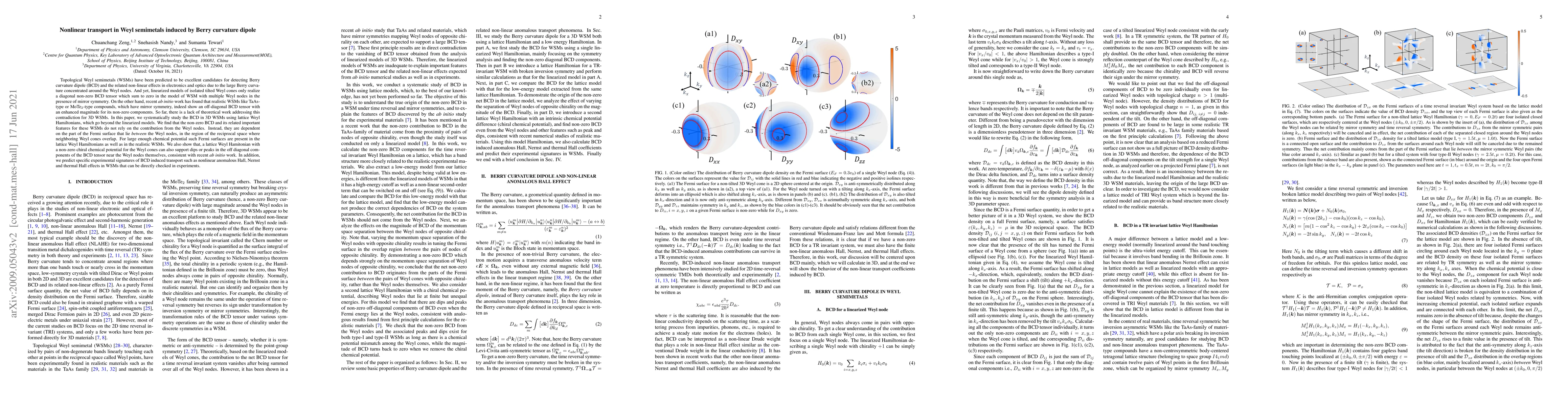 This paper investigates the nonlinear transport in Weyl semimetals (WSMs) induced by Berry curvature dipole (BCD), revealing that non-zero BCD tensor components arise from the Fermi surface regions between Weyl nodes rather than from the nodes themselves. The study shows that lattice Weyl Hamiltonians, which account for overlapping Weyl cones, support these features and can also exhibit BCD tensor variations near Weyl nodes with a chiral chemical potential.