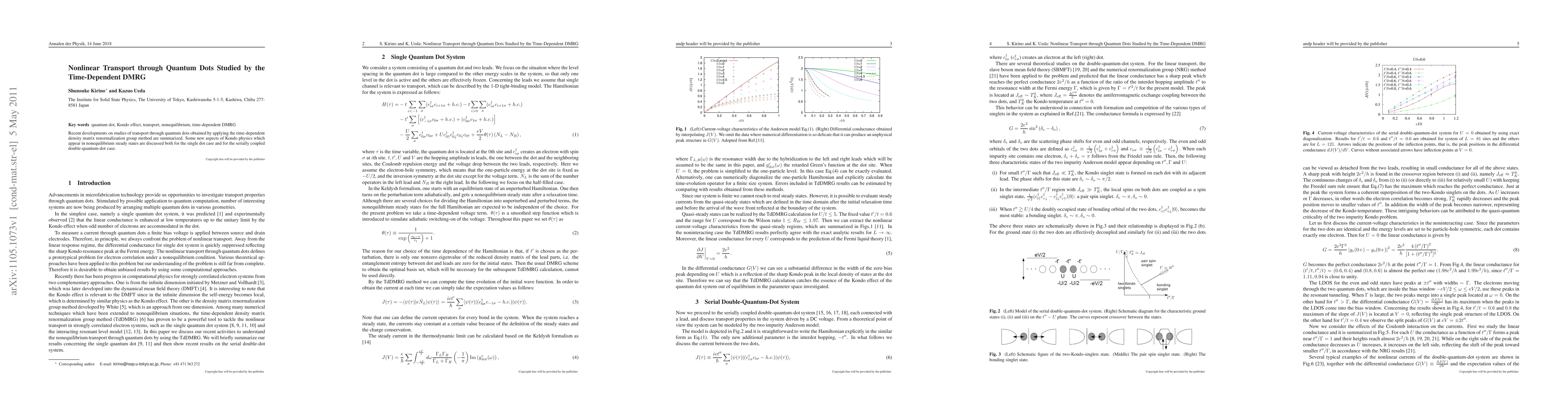 Summary: This paper reviews recent advances in studying nonlinear transport through quantum dots using the time-dependent density matrix renormalization group method, highlighting new insights into Kondo physics in nonequilibrium steady states for both single and double quantum dots.