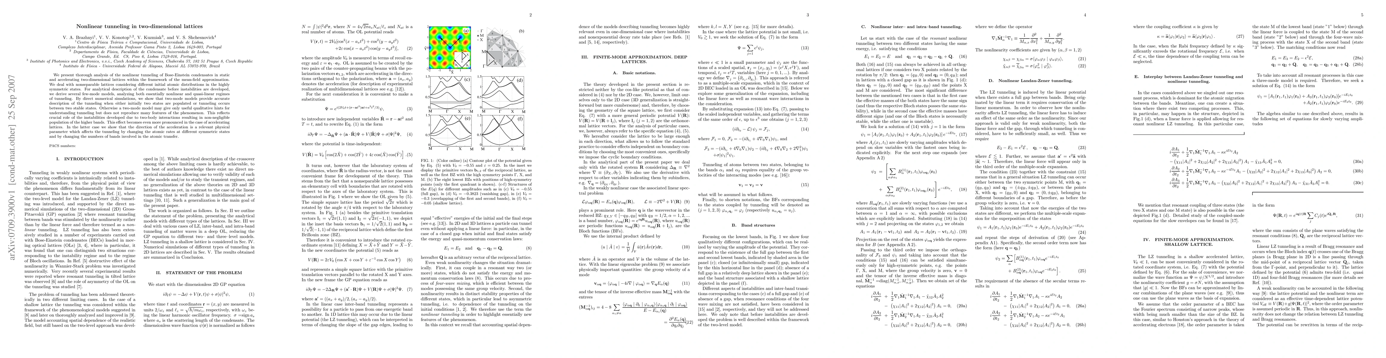 This paper analyzes nonlinear tunneling of Bose-Einstein condensates in two-dimensional lattices, deriving few-mode models for different tunneling regimes. It finds that two-mode models accurately describe tunneling between two populated or stable states, but fail to capture complex behaviors due to instabilities and higher band populations in non-separable lattices, especially in accelerating lattices where acceleration direction significantly influences tunneling dynamics.