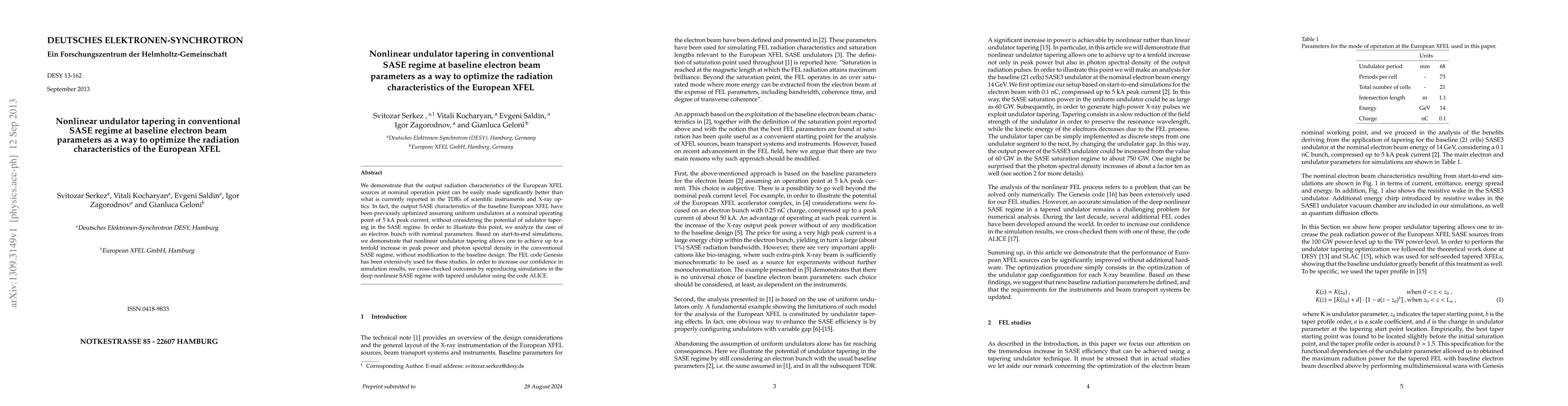 This paper explores the optimization of the European XFEL's radiation characteristics through nonlinear undulator tapering in the SASE regime, demonstrating a tenfold increase in peak power and photon spectral density without altering the baseline design. Simulations using Genesis and ALICE confirm the potential benefits of undulator tapering.