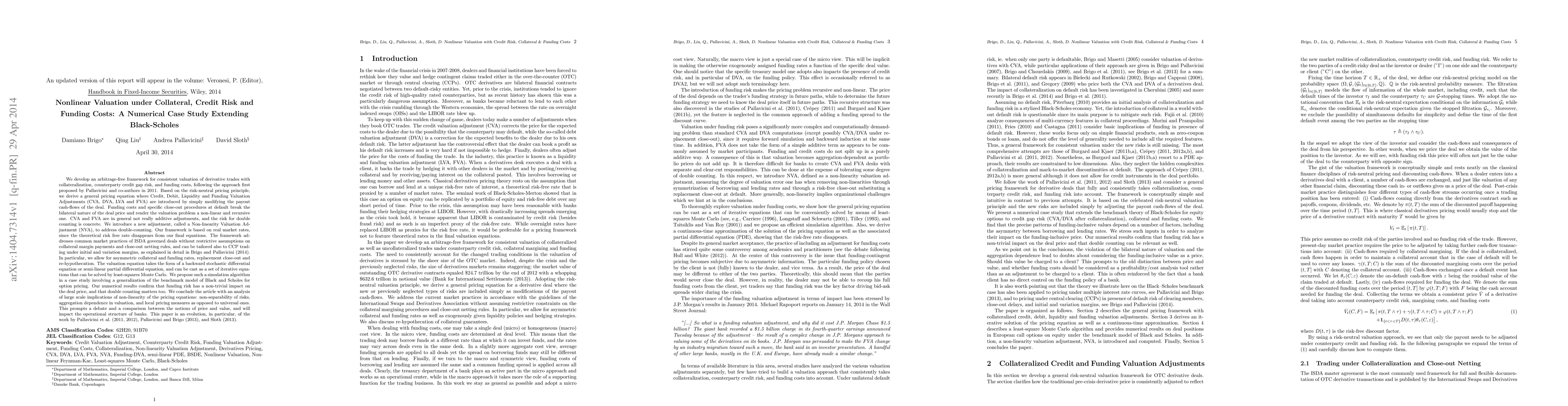 This paper presents an arbitrage-free framework for valuing derivatives considering collateral, credit risk, and funding costs, extending the Black-Scholes model. It introduces a new Non-linearity Valuation Adjustment (NVA) to prevent double counting and proposes a simulation algorithm based on least-squares Monte Carlo to solve the resulting non-linear valuation equations.