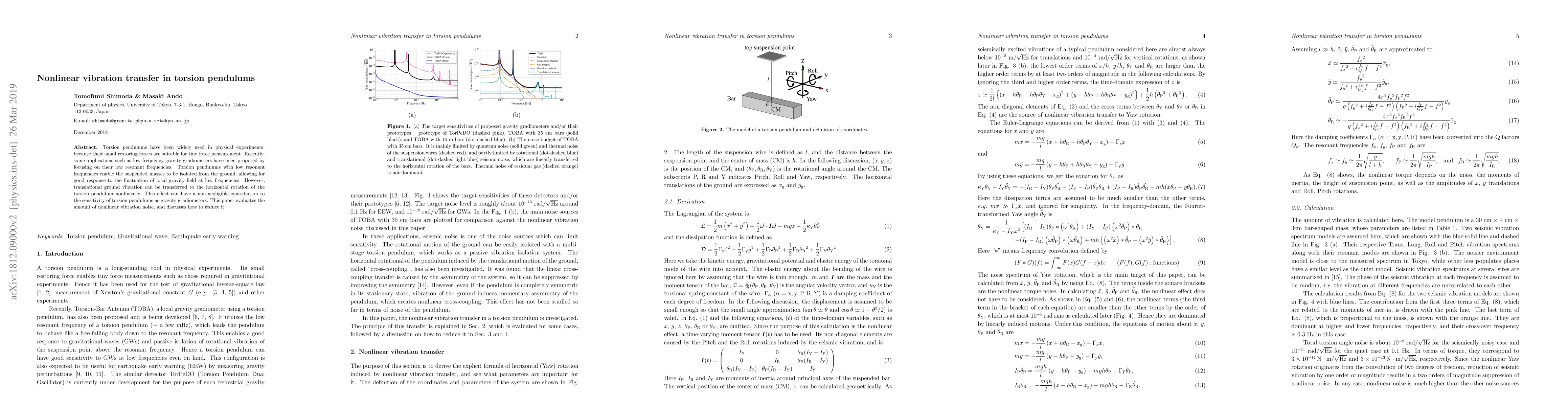 This paper investigates how ground vibrations can affect torsion pendulums used in low-frequency gravity gradiometers, finding that nonlinear vibration transfer can significantly impact their sensitivity. The study suggests ways to reduce this noise.