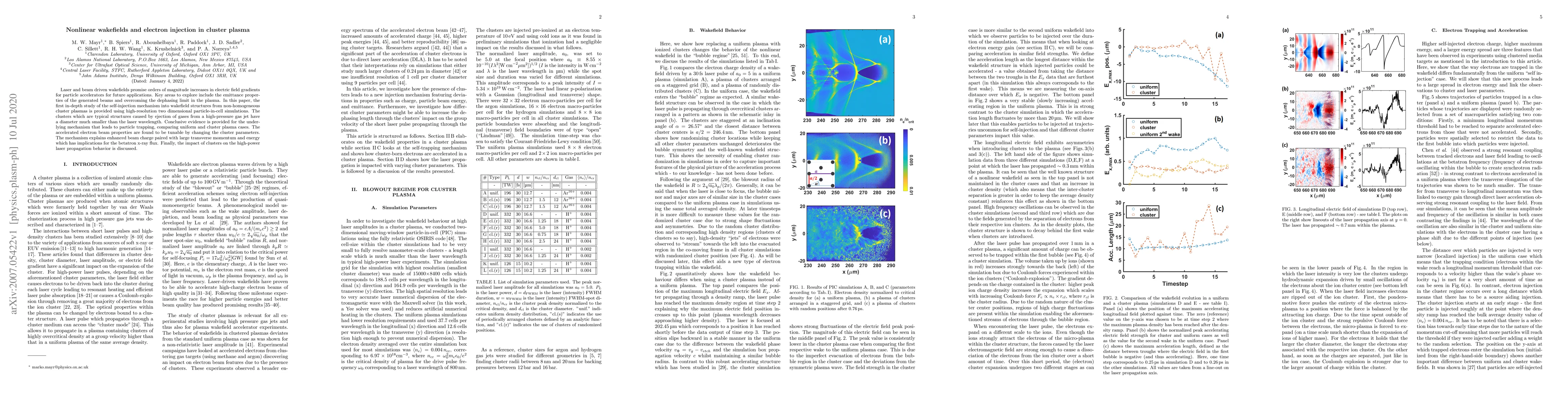 Researchers explored how cluster plasmas affect wakefields in particle accelerators, finding that clusters can enhance beam charge and momentum, with implications for X-ray production. The study used high-resolution simulations to understand the self-injection mechanism into wakefield structures from non-homogeneous cluster plasmas.