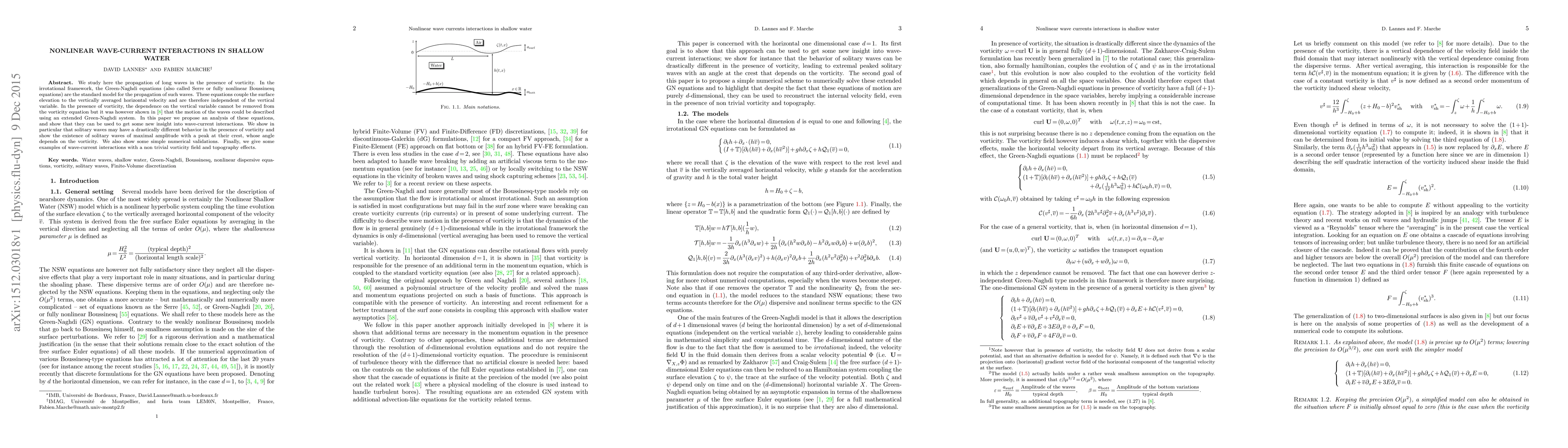 Researchers study how long waves interact with water currents in shallow areas, finding that vorticity changes wave behavior, especially solitary waves, which can have varying peak angles depending on the current's strength.