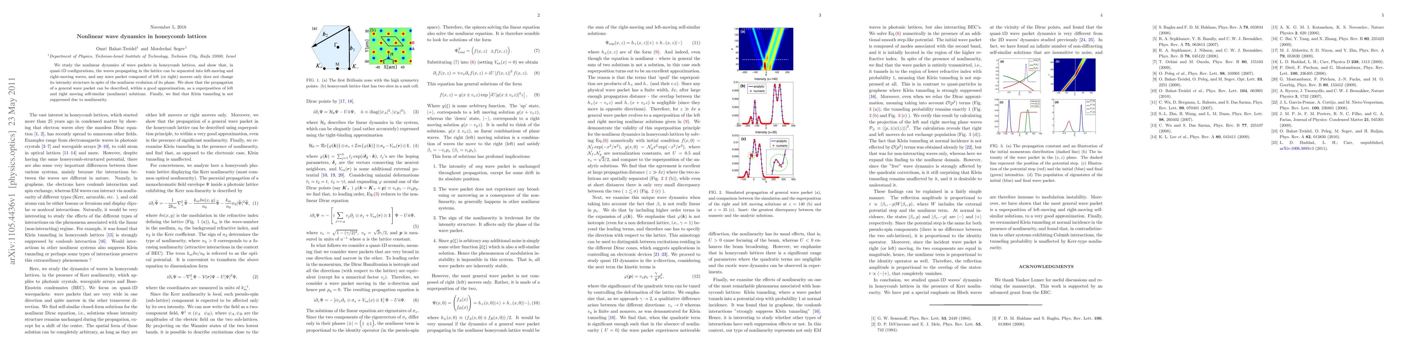 Researchers studied nonlinear wave dynamics in honeycomb lattices and found that waves can be separated into left-moving and right-moving components without changing intensity, and these components can propagate as self-similar solutions.