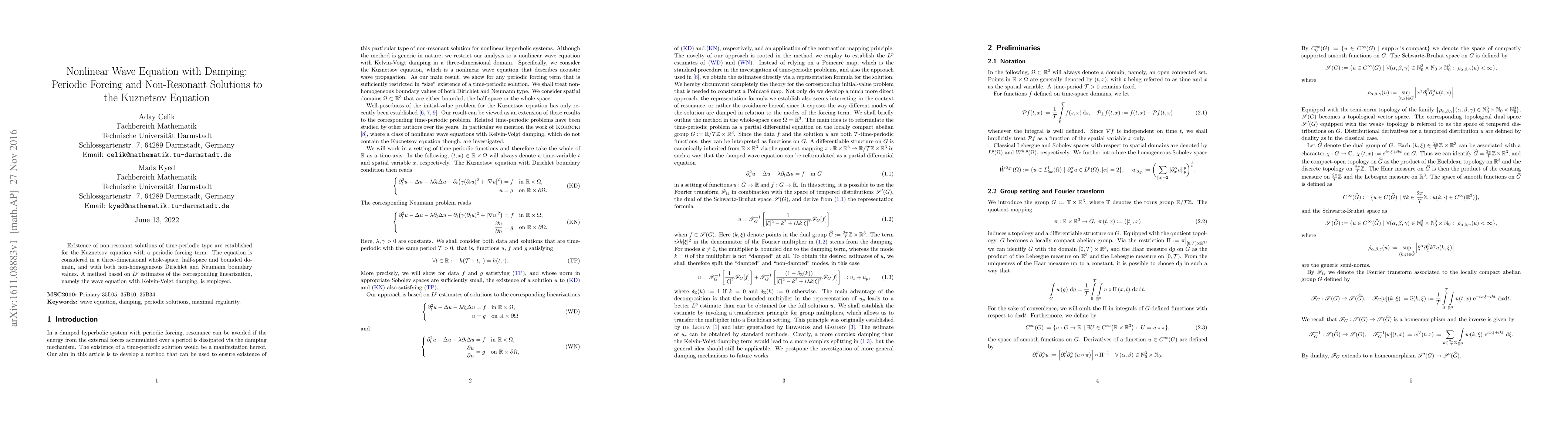 Existence of non-resonant solutions of time-periodic type are established for the Kuznetsov equation with a periodic forcing term. The equation is considered in a three-dimensional whole-space, half-space and bounded domain, and with both non-homogeneous Dirichlet and Neumann boundary values. A method based on Lp estimates of the corresponding linearization, namely the wave equation with Kelvin-Voigt damping, is employed.
