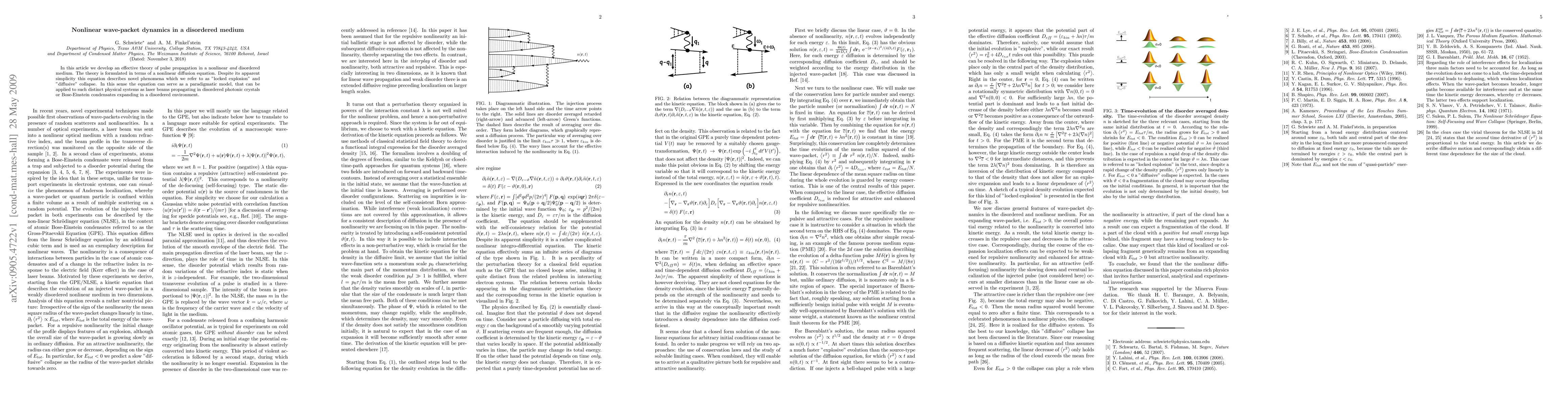 Researchers develop a theory for pulse propagation in disordered media, revealing novel phenomena like 'locked explosion' and 'diffusive collapse', applicable to systems such as laser beams in photonic crystals or Bose-Einstein condensates.
