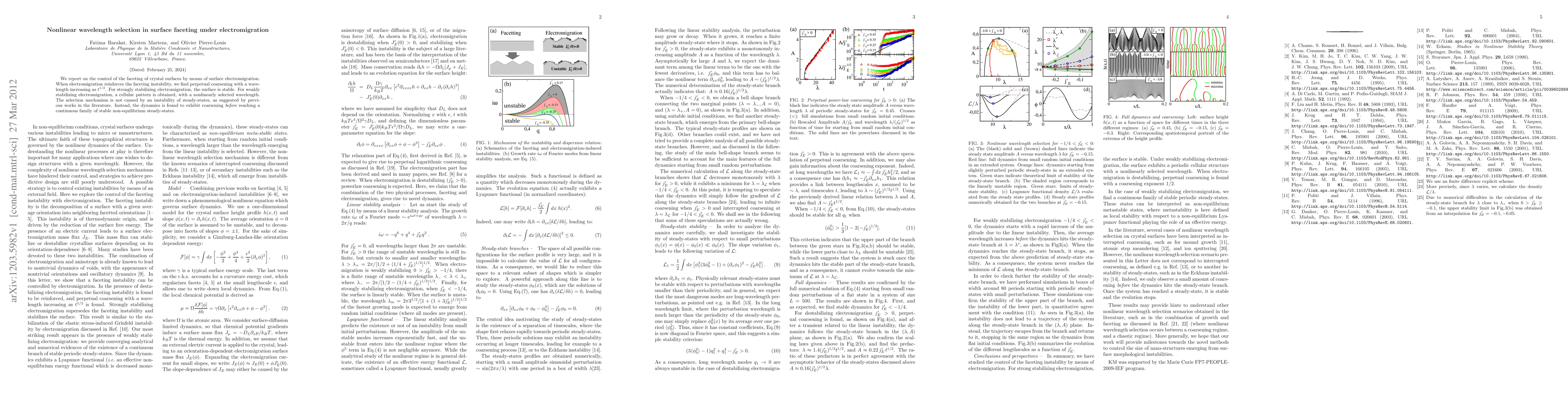 This paper explores the control of crystal surface faceting via surface electromigration, revealing that nonlinear wavelength selection occurs due to coarsening dynamics before reaching stable non-equilibrium steady-states, rather than through traditional instability mechanisms. The wavelength increases as $t^{1/2}$ under reinforcing electromigration, while stabilizing electromigration can either stabilize or induce cellular patterns depending on the strength.
