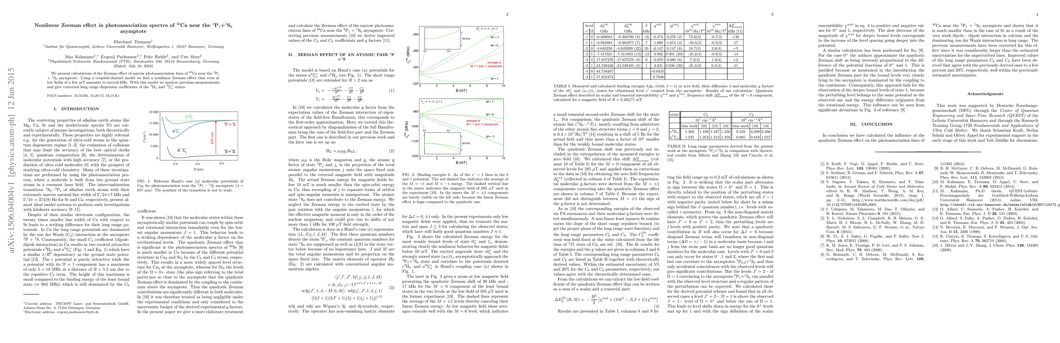 We present calculations of the Zeeman effect of narrow photoassociation lines of $^{40}$Ca near the $^3$P$_1$ + $^1$S$_0$ asymptote. Using a coupled-channel model we find a nonlinear Zeeman effect that even at low fields of a few mT amounts to several kHz. With this model we analyze previous measurements and give corrected long range dispersion coefficients of the $^3\Pi_{u}$ and $^3\Sigma^+ _{u}$ states.