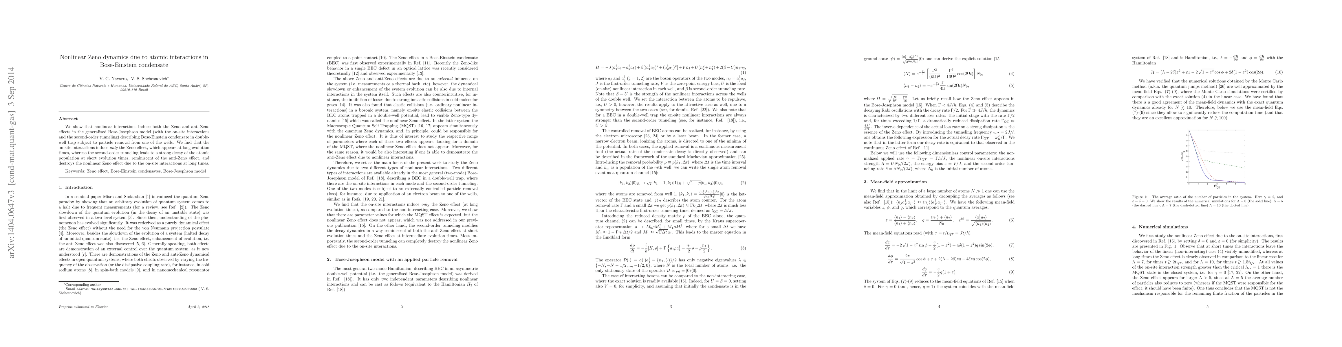 We show that nonlinear interactions induce both the Zeno and anti-Zeno effects in the generalised Bose-Josephson model (with the on-site interactions and the second-order tunneling) describing Bose-Einstein condensate in double-well trap subject to particle removal from one of the wells. We find that the on-site interactions induce \textit{only} the Zeno effect, which appears at long evolution times, whereas the second-order tunneling leads to a strong decay of the atomic population at short evolution times, reminiscent of the anti-Zeno effect, and destroys the nonlinear Zeno effect due to the on-site interactions at long times.